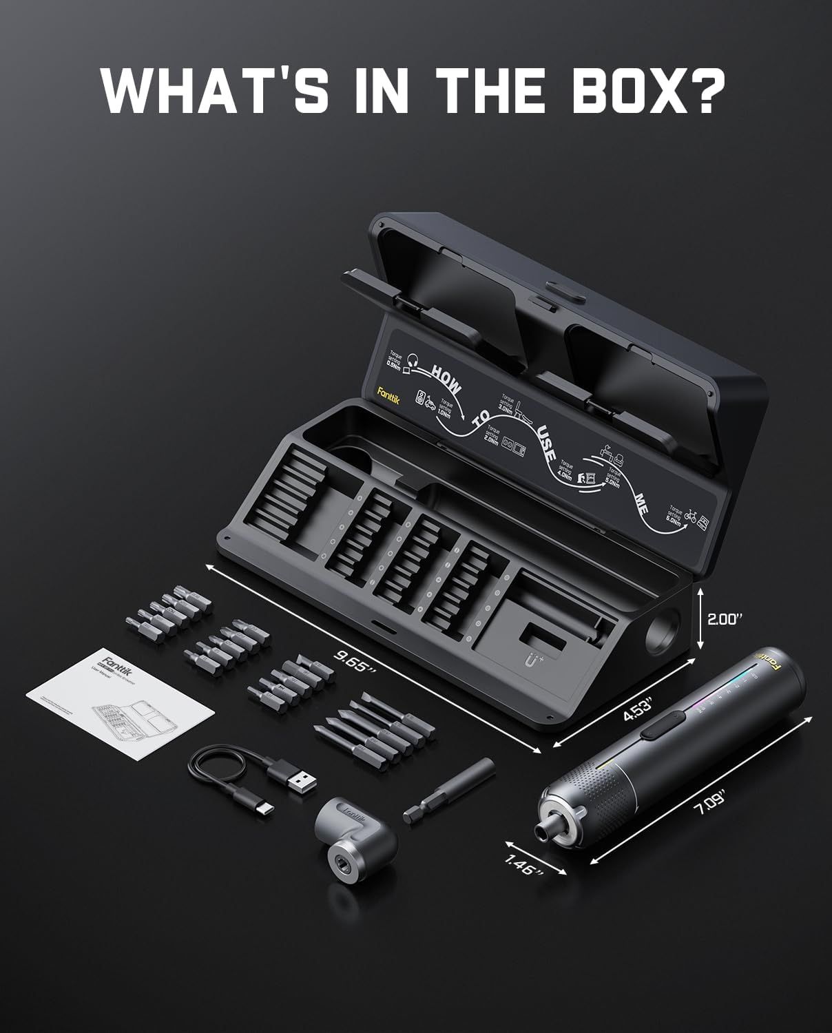 Fanttik S2 Pro Electric Screwdriver, Cordless Screwdriver Set, 7 Torque Settings, 0.5 to 6N.m, 20 Magnetic Bits, 1/4''Hex Shank, with 90° Angle Adapte