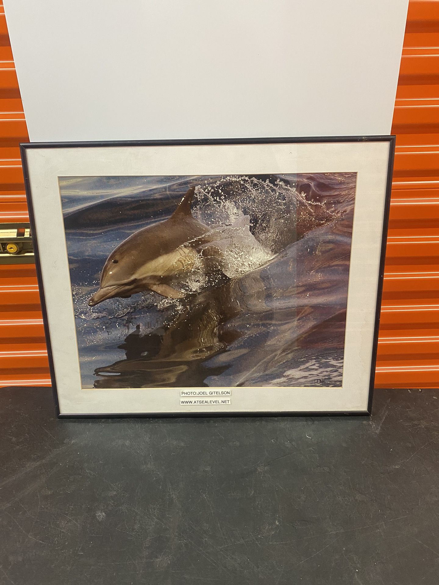 FRAMED DOLPHIN PHOTO BY JOEL GITELSON 👉PRICE IS FIRM👈 I have it at a storage unit next to iFly indoor skydiving building 10645 SW Greenburg Rd Portland, OR 97223 The address is for the iFly the storage is next door called safegard mini storage and its address will take you to the back gate not the entrance that is why I give iFly address Let me know when would you like to meet there thanks 👉PRECIO FIJO👈 Puedes probarla antes de comprarla. La tengo en un almacén junto al centro de paracaidismo cubierto iFly. 10645 SW Greenburg Rd Portland, OR 97223 La dirección es para iFly. El almacén está al lado, se llama Safegard Mini Storage, y su dirección te lleva a la puerta trasera, no a la entrada. Por eso te doy la dirección de iFly. Avísame cuándo te gustaría quedar allí, gracias.