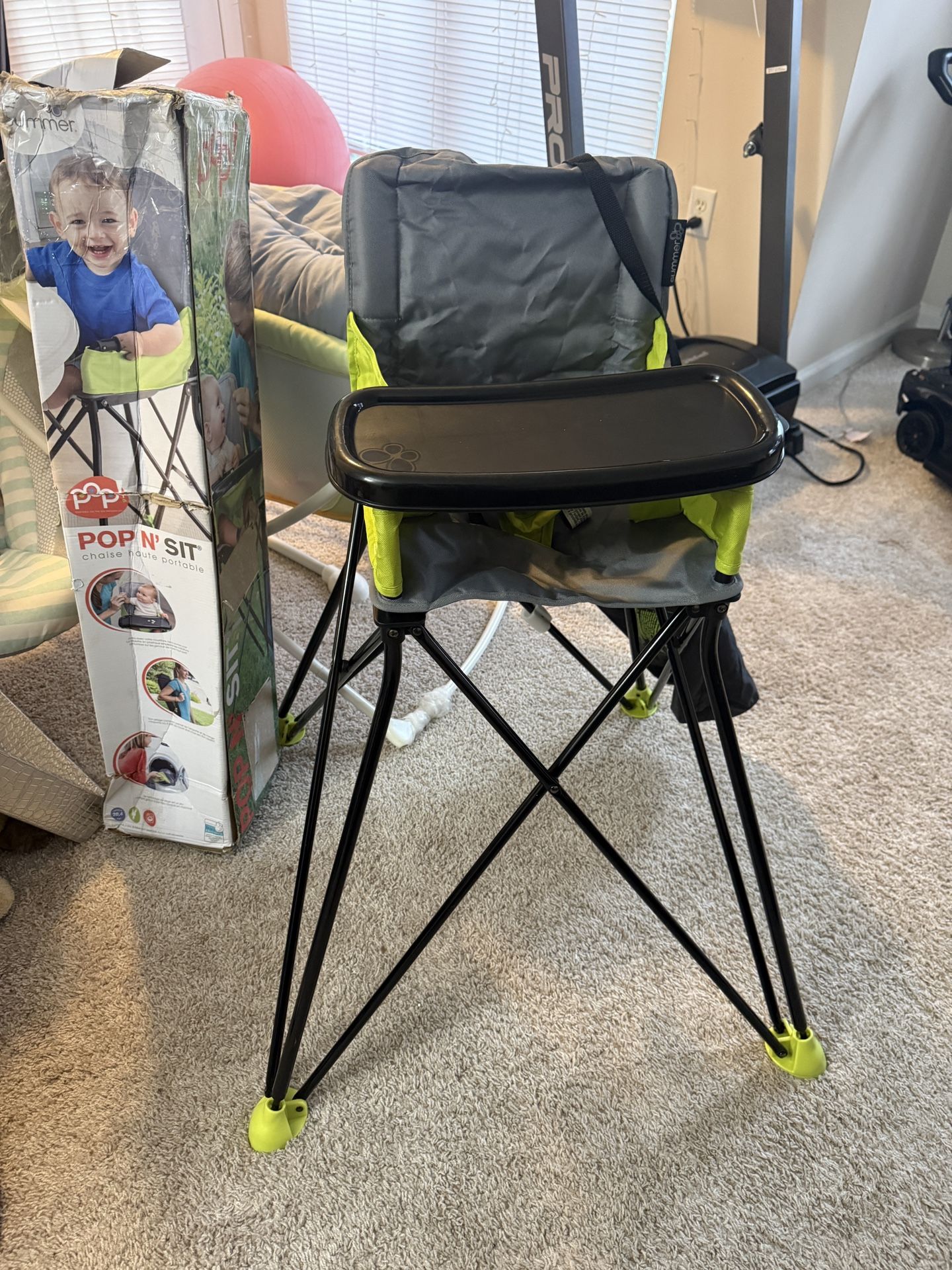 Summer Infant Pop ‘n Sit Portable Highchair supports on-the-go lifestyles and makes feeding time easy with a removable, BPA-free tray, innovative pop and fold set-up, and over the shoulder carrying bag. With its lightweight design and compact fold, the Summer Infant Pop ‘n Sit Portable Highchair is perfect for dining on-the-go or even in the patio with your little one. When your baby needs a place to eat, just pop it open. Made using the highest quality materials. Rear storage pocket and storage bag for travel Ages 6 months to 3 years and upto 45 pounds 3-point safety harness Machine washable fabric removes for easy cleanup Hard plastic tray provides a clean place for eating, sturdy enough so food will not fall into baby’s lap. Do not use high chair until child can sit upright unassisted In the Box: (1) Bright Starts Pop ‘n Sit Portable Highchair, Green - Portable Highchair For Indoor/Outdoor Dining – Space Saver High Chair with Fast, Easy, Compact Fold, For 6 Months – 45 Pounds