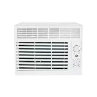 GE Appliances is dedicated to providing the right solutions for rooms of any size. Window air conditioners are designed to offer exceptional comfort while remaining quiet, and our latest connected technology makes these products versatile and easy to use. Cools Small Rooms - 5,000 BTU cooling capacity offers maximum comfort in rooms up to 150 square feet Maximum Comfort Cool - two cooling settings and fan speeds provide total flexibility with optimal home comfort and air conditioner efficiency Adjustable Thermostat - mechanical controls make it easy to adjust and manage your air conditioner settings Removable Filter - filter can be easily removed for cleaning, so you can keep the unit performing at its best Easy Installation - this AC has a fixed chassis and installs easily in a double hung window with included EZ Mount installation kit Louver Style - the 2-way adjustable louvers distribute air evenly throughout the room Compact Air Conditioner - this compact AC is perfect for a bedroom, office, apartment or any small area in the home Temperature Control - choose from 10 temperature settings to find the perfect cool Voltage - this unit requires a 115 Volt outlet type