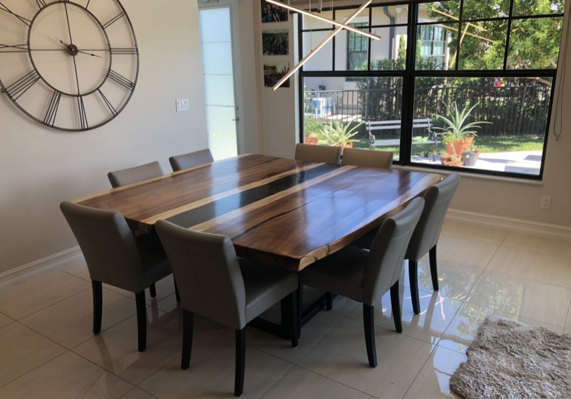 💥 New Inventory! We have over 400 raw slabs to choose from. We go after high figured slabs with crazy grain action. Come by our showroom to custom build your piece. We do it all..... floating shelves, dining tables, conferences tables and bar tops! If you can not come by we offer virtual appointments. All of our exotic hardwoods have been kiln dried, fed through a wide belt sander at 100 grit and leveled. We sell $30 a board foot raw and an additional $10-$15 a board foot to finish. Bulk pricing available, message for rates! Ask about our epoxy resin work! We specialize in river tables. Thank you, Veteran Owned and Family Operated! We are located at 700 NE 42nd St Deerfield Beach, FL 33064 954*. 851* 4988 Mon-Sat 8am-3pm Shipping and Delivery available