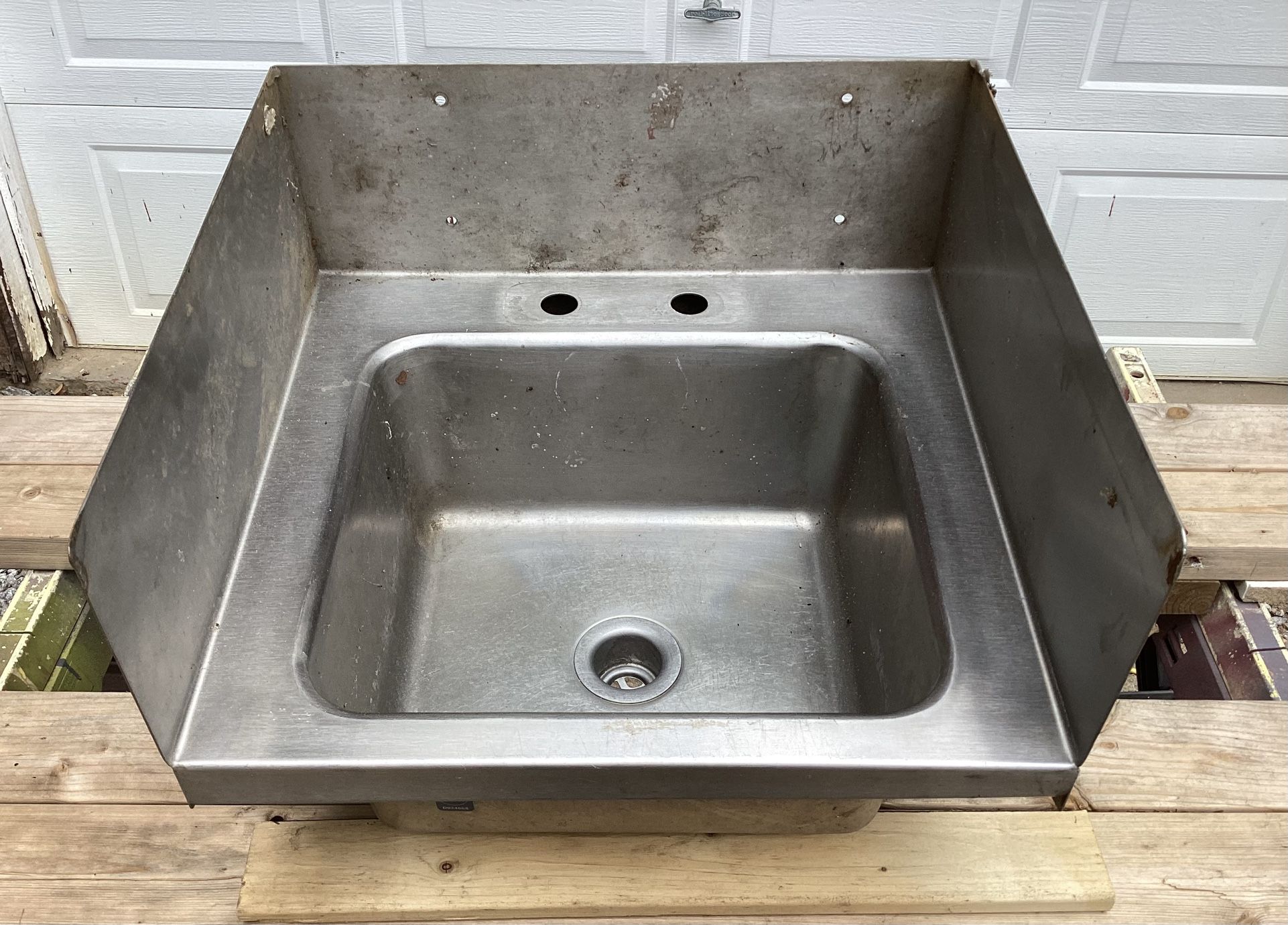 H and K Dallas stainless steel sink. Item is used and will require a new replacement faucet and drain. Easy to mount to wall. Ideal for garage, laundry, garden shed or shop. Material is heavy duty stainless steel and heavy, .pick up in town of Belton, SS. $50 cash, no trades or checks.