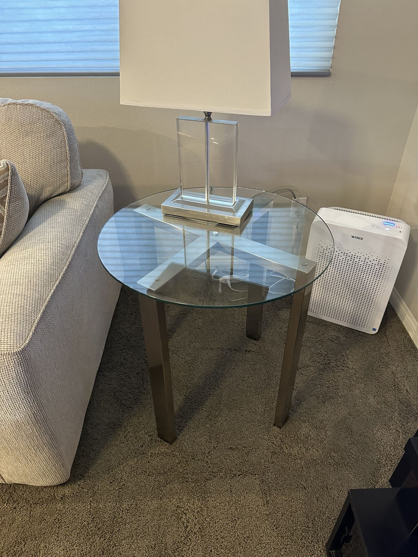 Ashley Furniture Modern Glass End Table / Side Table Stainless steel