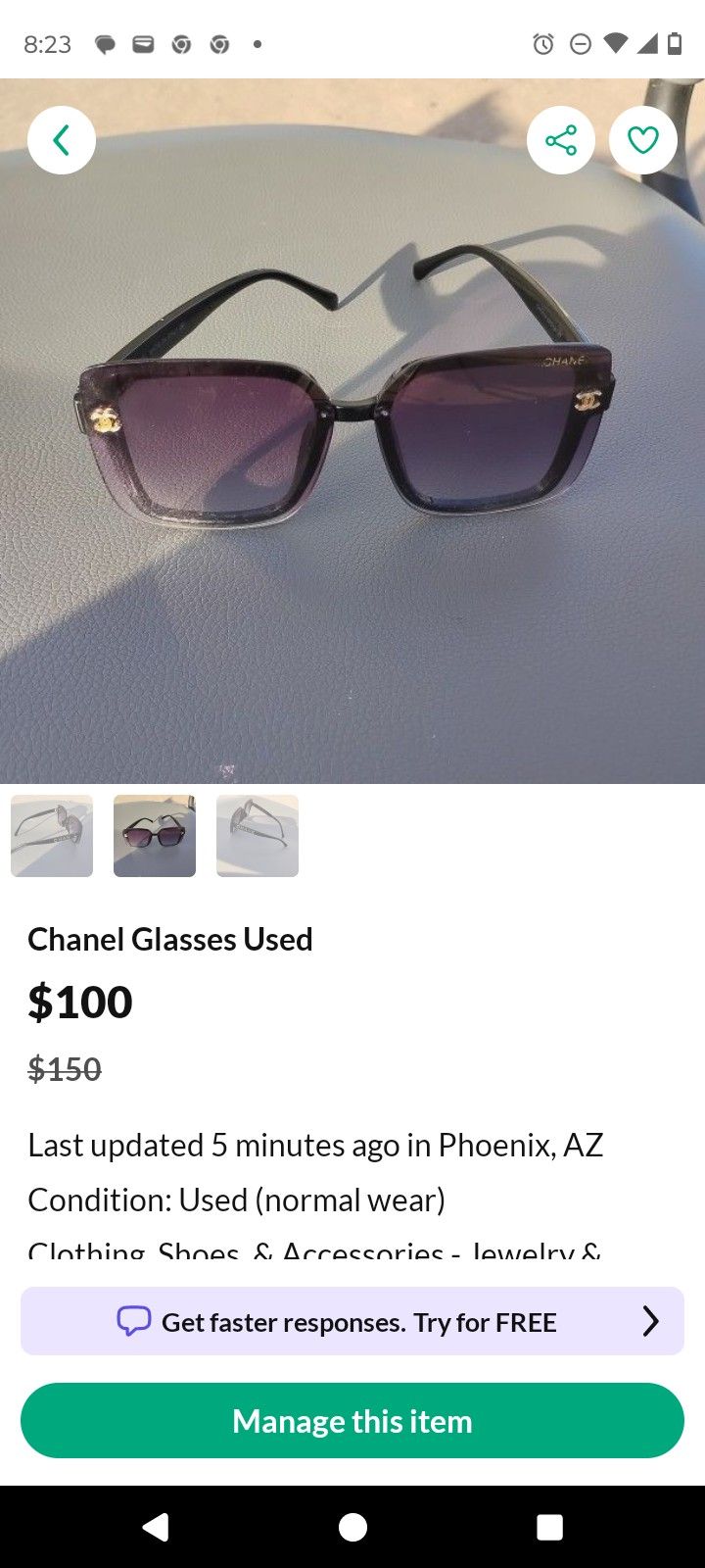 Very cute Gucci sunglasses marked down from 150 to 60 only take payment in cash some of the letters are missing but are very stylish.