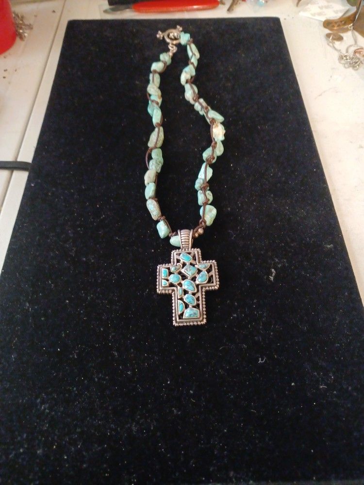 Very nice sterling silver necklace with Turquoise Stone and leather string with sterling silver Turquoise charm..hallmark..tested.OBO..I accept cash app, square and cash..I ship for free with tracking number.....