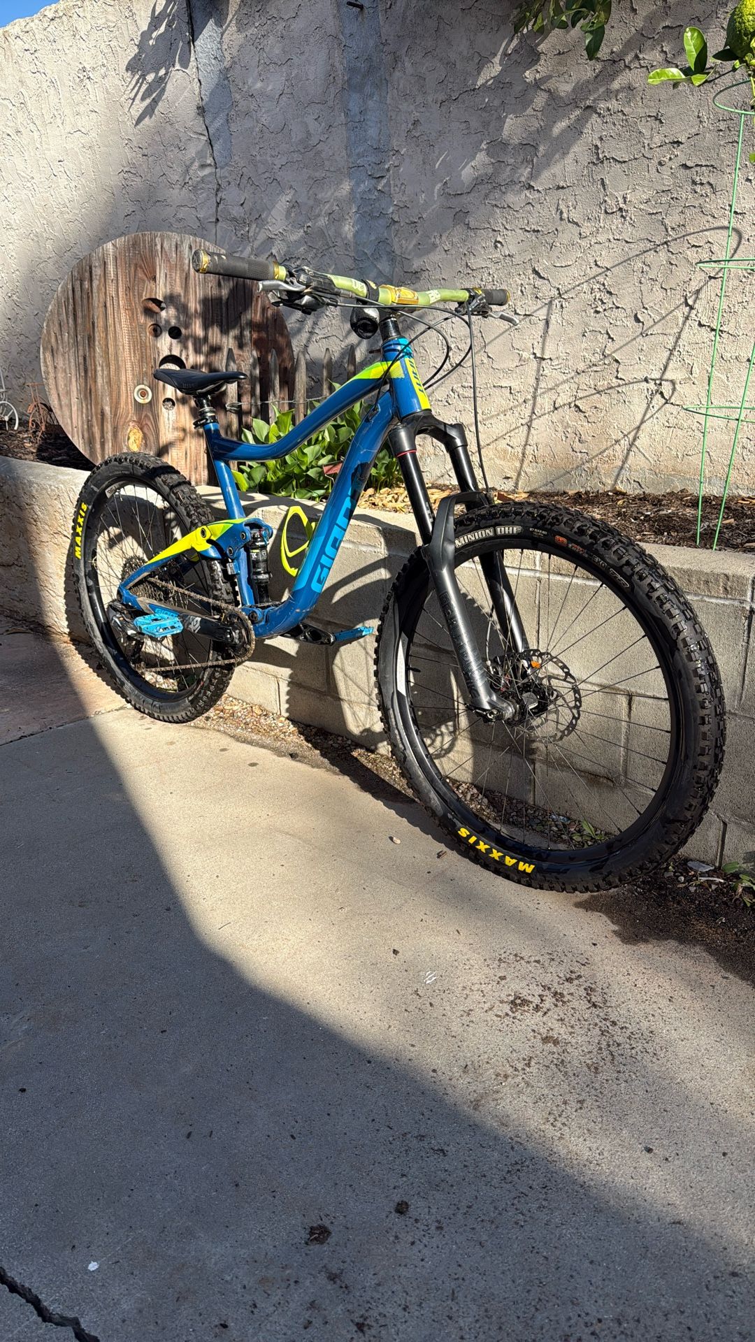 Fully custom Mountain Bike Giant Large Frame RockShox Pike 36 Fox Float EVOL DPS rear Full GX Eagle 51 drivetrain Ibis 738 wheelset Diety Handlebars Crank Brothers Stamp pedals Fox transfer dropper seat post Maxxis Minion DHR 2.6 tires