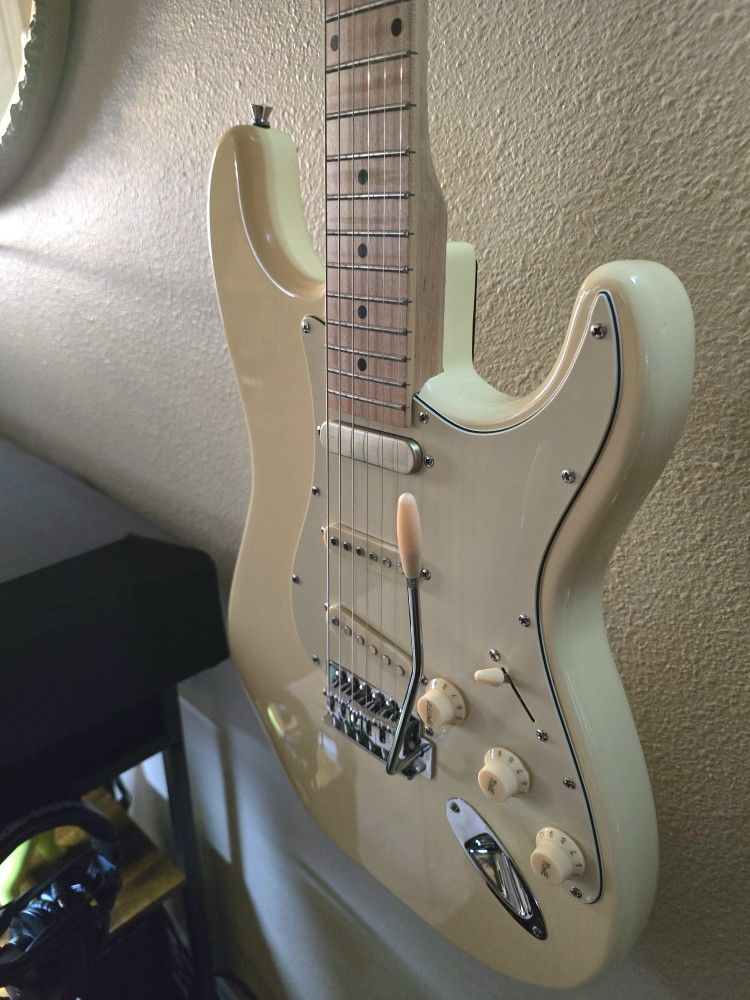 Selling a Sawtooth Strat-Style Guitar cream color used like new.