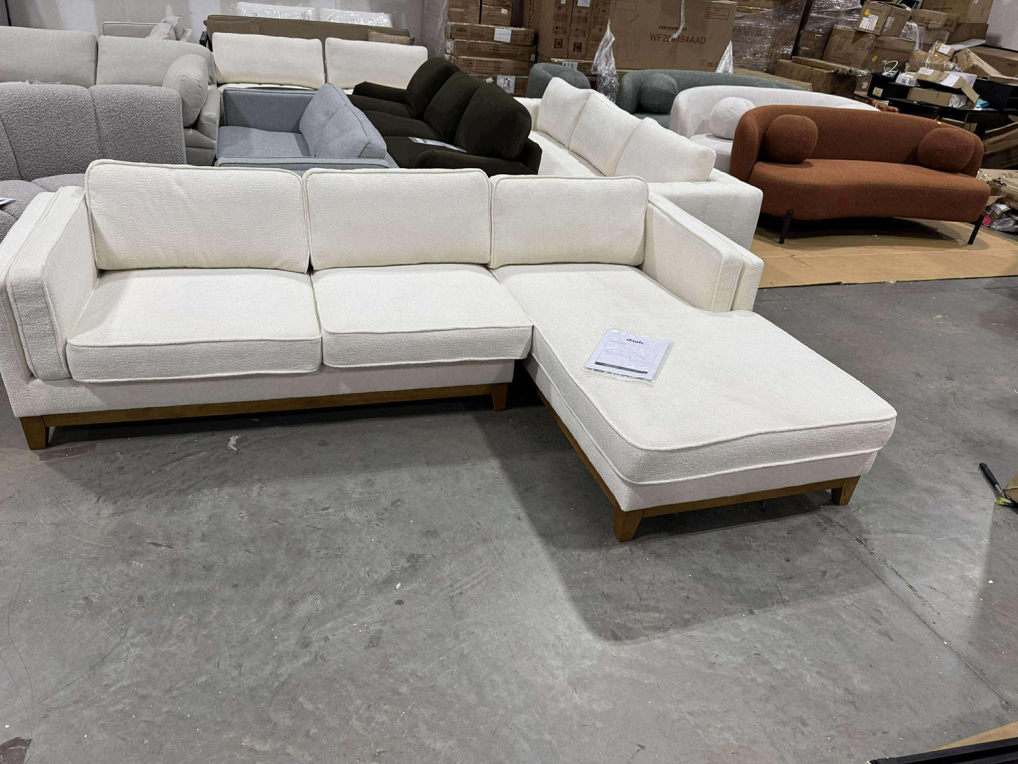 Daals Dipley Beige Boucle Fabric Sofa, Grande Chaise Sofa Right Hand Facing