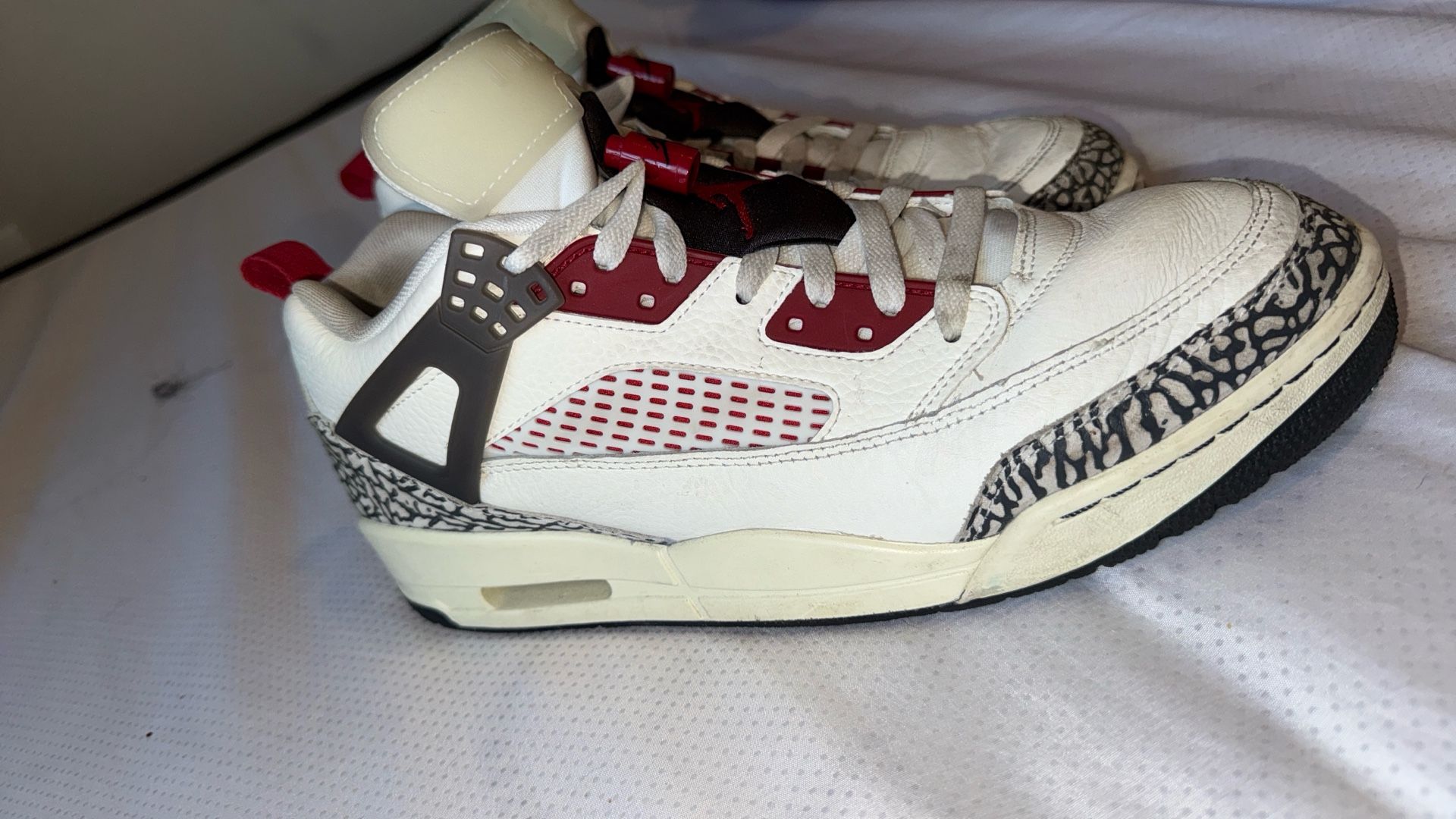 Nike Air Jordan Spizike sneakers in white with red accents. Men’s size 11.5. Gently used and in good condition. • Original Nike Jordan • Clean overall, normal signs of wear • No rips, no major damage • Comfortable and stylish Local pickup preferred. Cash or Zelle. Message me if interested.