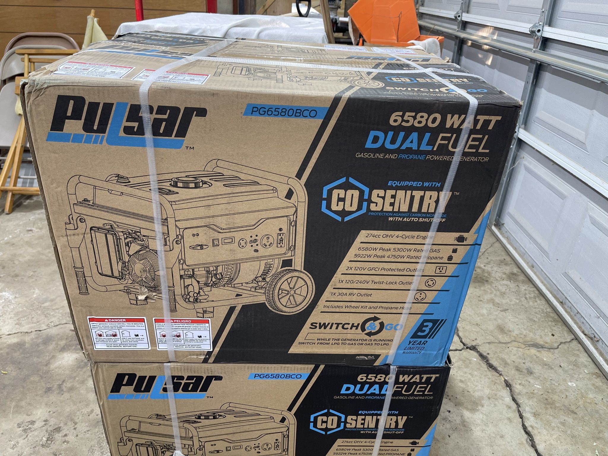 Brand new generator in box Dual fuel 6,580/5,300 -Watt Dual-Fuel Gasoline and Propane with Recoil Start Portable Home Power Generator, CO Shutoff Palatine pickup.