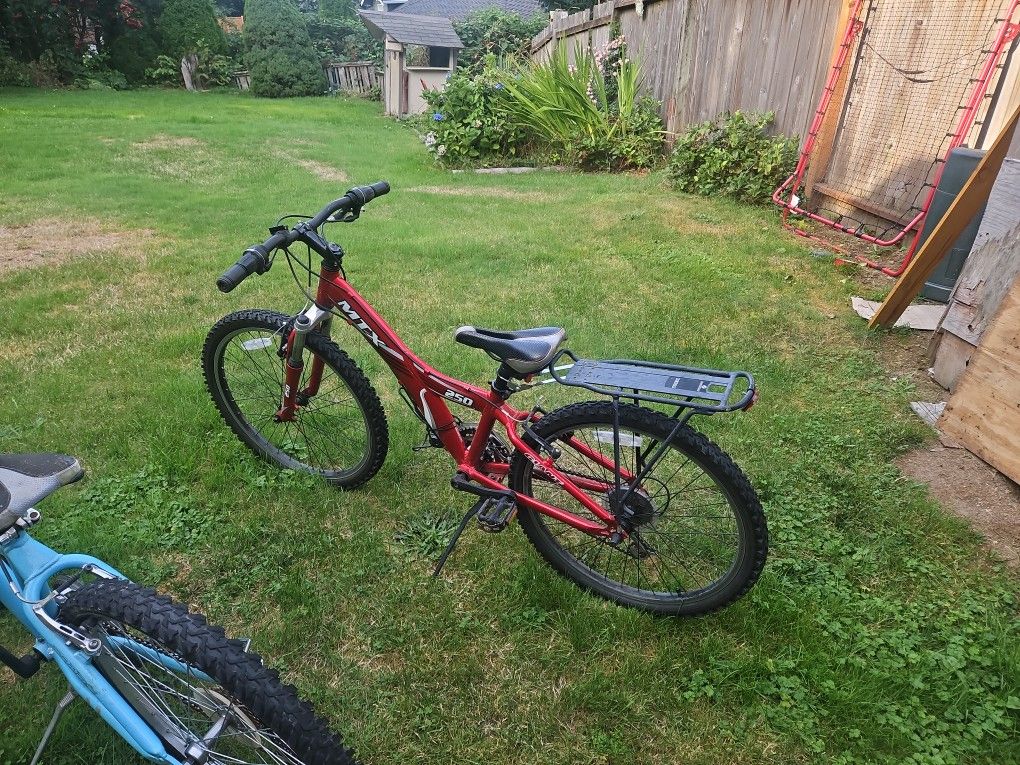 MTX GIANT, descent shape, rideable but could use a tune up. Daughter grew out of it but it's ready for someone else. Tires hold air w good tread still , brakes function properly but a tune up would bring her back to new condition. Pickup is in the silver lake area of S Everett. If it's up it's available. Low ballers will be ignored. Thanks for looking. Just updated w few new pics showing the seat extended to accommodate taller riders. Tape measurement begins at center of crank shaft . See pics for details. Seat hight from off the ground can range from 23 inches at shortest to 33 inches from the ground at its tallest.