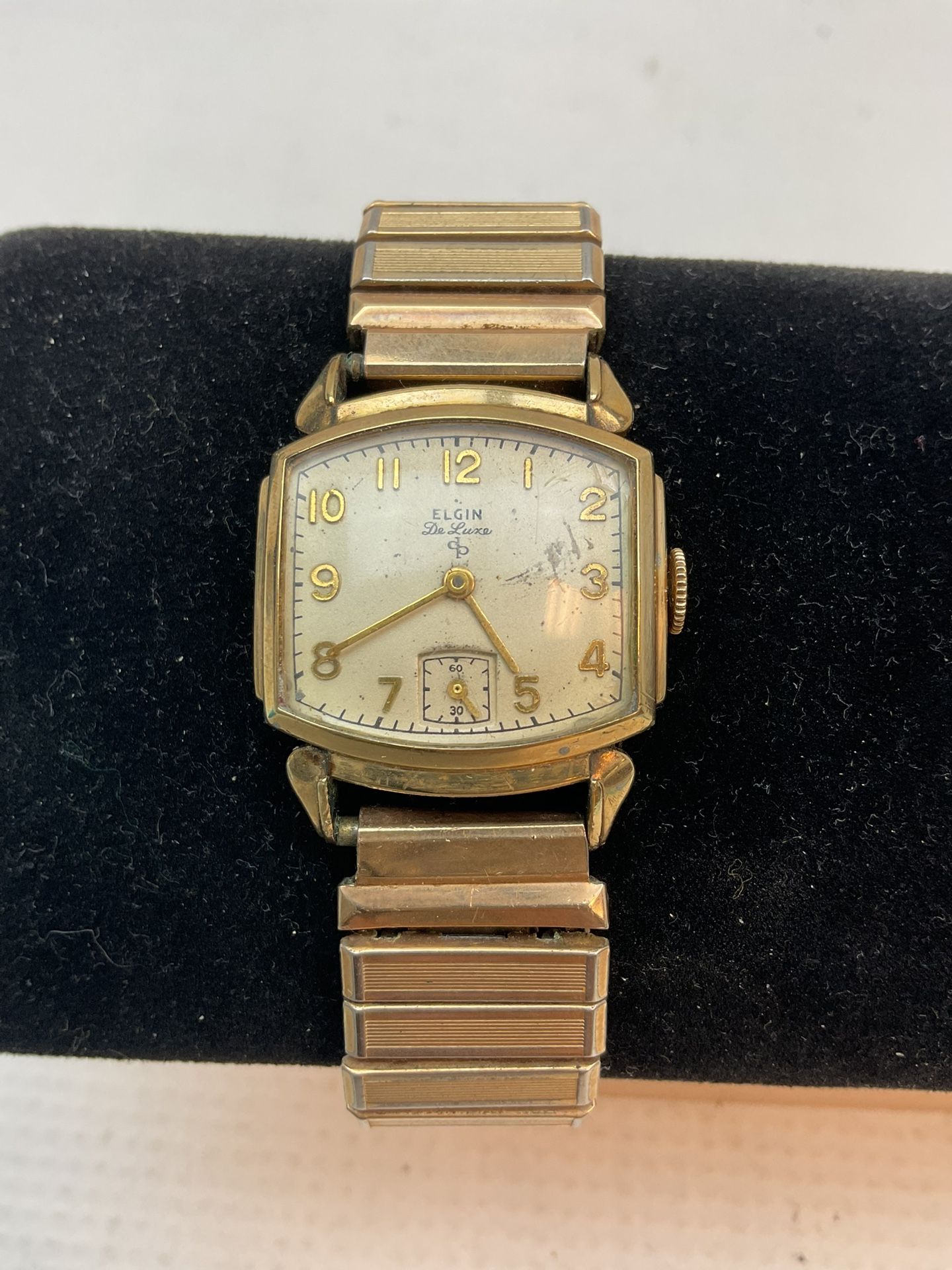 For sale is a Vintage ELGIN DeLuxe 10k Gold Filled Watch with a second hand sub-dial. The watch is in good working condition.