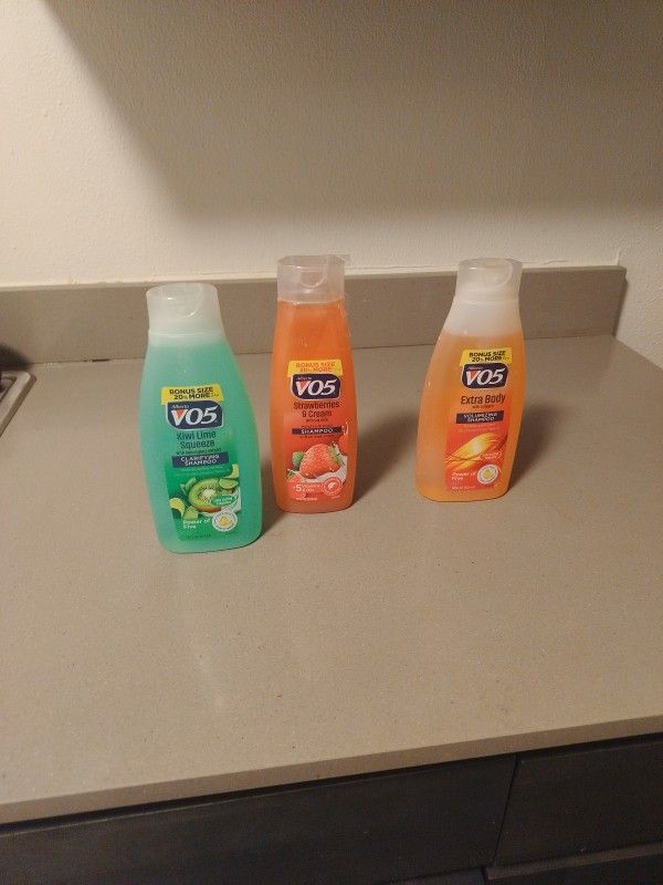 Vo5 extra body with collagen and vo5 strawberry and cream one vo5 kiwi lime squeeze with lemongrass extract