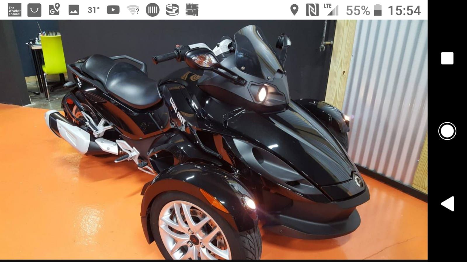 3,417 miles 2 owners Spyder weighs in at just over 800 pounds and, like it’s hefty curb weight, has gobs of curb appeal, too: blacked-out handlebars, foot pegs, rear sprockets and springs, a sporty windshield, seat stitching, and Metallic 15-inch rims. The Spyder performs decently on the highway, managing up to 100 hp and 30 MPGs, tricycles don’t lean or flow into turns as motorcycles do; they ride more like a car. Trikes are incredibly user-friendly, so much so that it’s been suggested that if you know how to drive a car then you should have no problem learning how to operate the 2014 Can-Am Spyder, especially when you take into account the Vehicle Stability System that Can-Am incorporated, which integrates ABS, traction control and stability control, so you can ride confidently regardless of experience level. On top of that, the Spyder also boasts conveniences like cruise control, sport-tuned handling, a 5-speed manual transmission with reverse, digital gauges, extremely comfortable seating. Not to mention, you can store up to two motorcycle helmets and other miscellaneous items inside its 12-gallon lockable front storage compartment. One thing’s for sure: the 2014 Can-Am Spyder RS-S is one of the most unique powersports vehicles you’ll find on the road. Delivering crisp acceleration and satisfactory torque, this three-wheeled machine is sure to get the blood pumping on even the most humdrum of days. Can-Am Spyder Specs * Engine Type Rotax® V-twin, liquid-cooled with EFI and electronic throttle control * Displacement 998cc * Bore & Stroke 3.82 in. x 2.68 in. * Power 100 hp @ 7500 RPM * Torque 80 lb-ft. @ 5000 RPM * Transmission 5-speed manual with reverse * Front Suspension Double A-arm with anti-roll bar * Front Shocks SACHS† shocks / 5.9 in. * Rear Suspension Swing arm * Rear Shocks SACHS† monoshock / 6.0 in. * Electronic Brake Foot-operated, hydraulic 3-wheel brake * Distribution System * Front Brakes 270 mm discs with Brembo† 4-piston fixed calipers * Rear Brake 270 mm disc with Brembo single-piston floating caliper * Front Tires 165 / 55 R15 * Rear Tire 225 / 50 R15 * Aluminum Front 6 twin-spoke, 15.0 in. x 5.0 in. * Aluminum Rear 15.0 in. x 7.0 in. * L x W x H 105 x 59.3 x 45.1 in. * Wheelbase 67.5 in. * Seat Height 29 in. * Ground Clearance 4.5 in. * Dry Weight 798 lb * Storage Capacity 12 gal * Max. Vehicle Load 440 lb * Fuel Capacity 6.6 gal