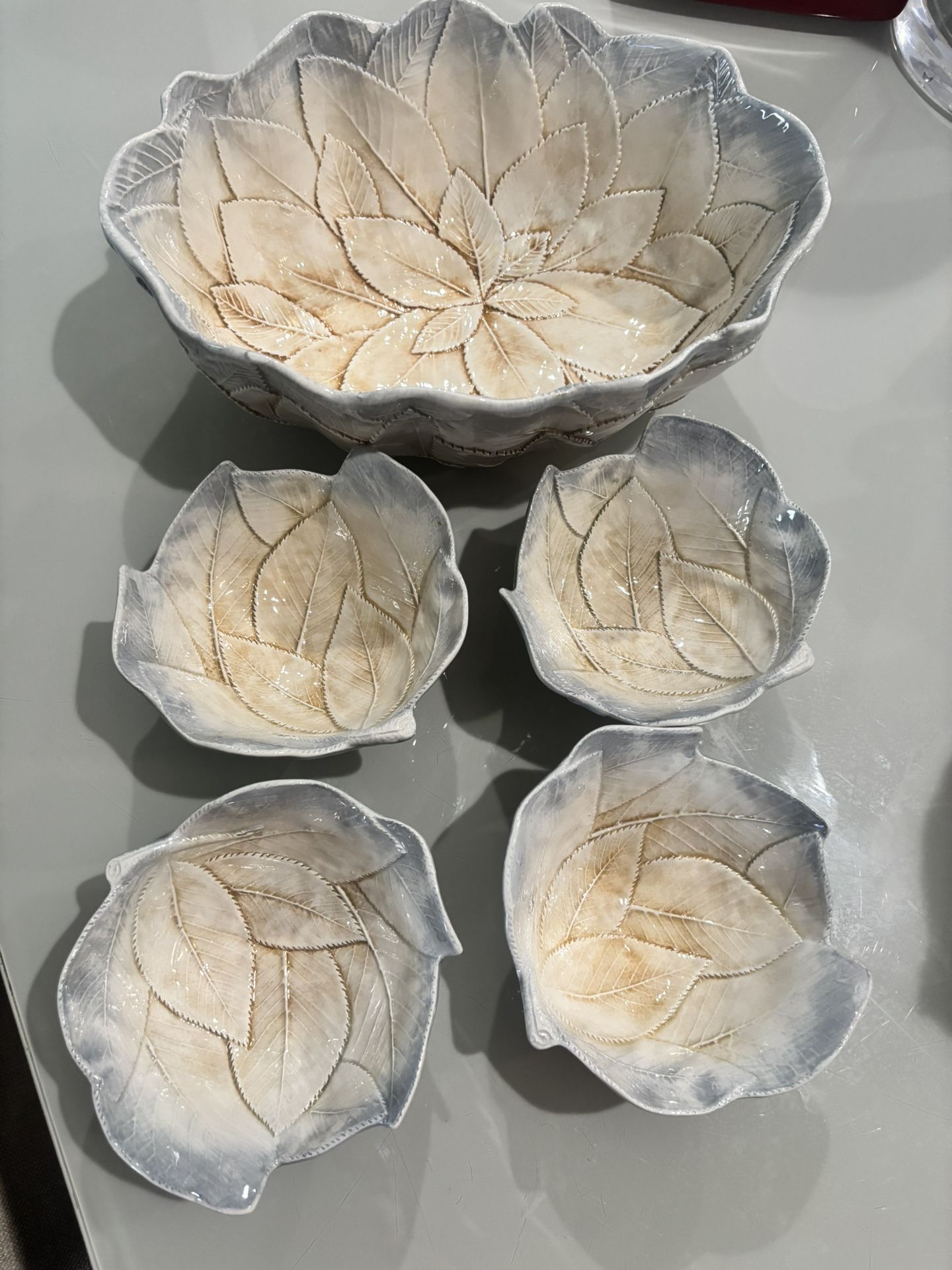 Green Leaves Serving/Decorative Bowl, Made In Italy