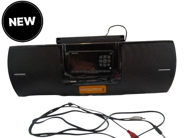 BRAND NEW NEVER USED IN BOX! The item shown is a SiriusXM SXSD2 Dock and Play Radio Boombox combined with a SiriusXM satellite radio tuner. It features a 2.1 system with two tweeters, two midrange speakers, and a dedicated subwoofer. The tuner allows for "Dock & Play" functionality, enabling portable listening via AC power or batteries. The setup includes an indoor/outdoor antenna for signal reception. Pricing for this bundle generally ranges from approximately $100 to $200 depending on the specific tuner model included and retailer.