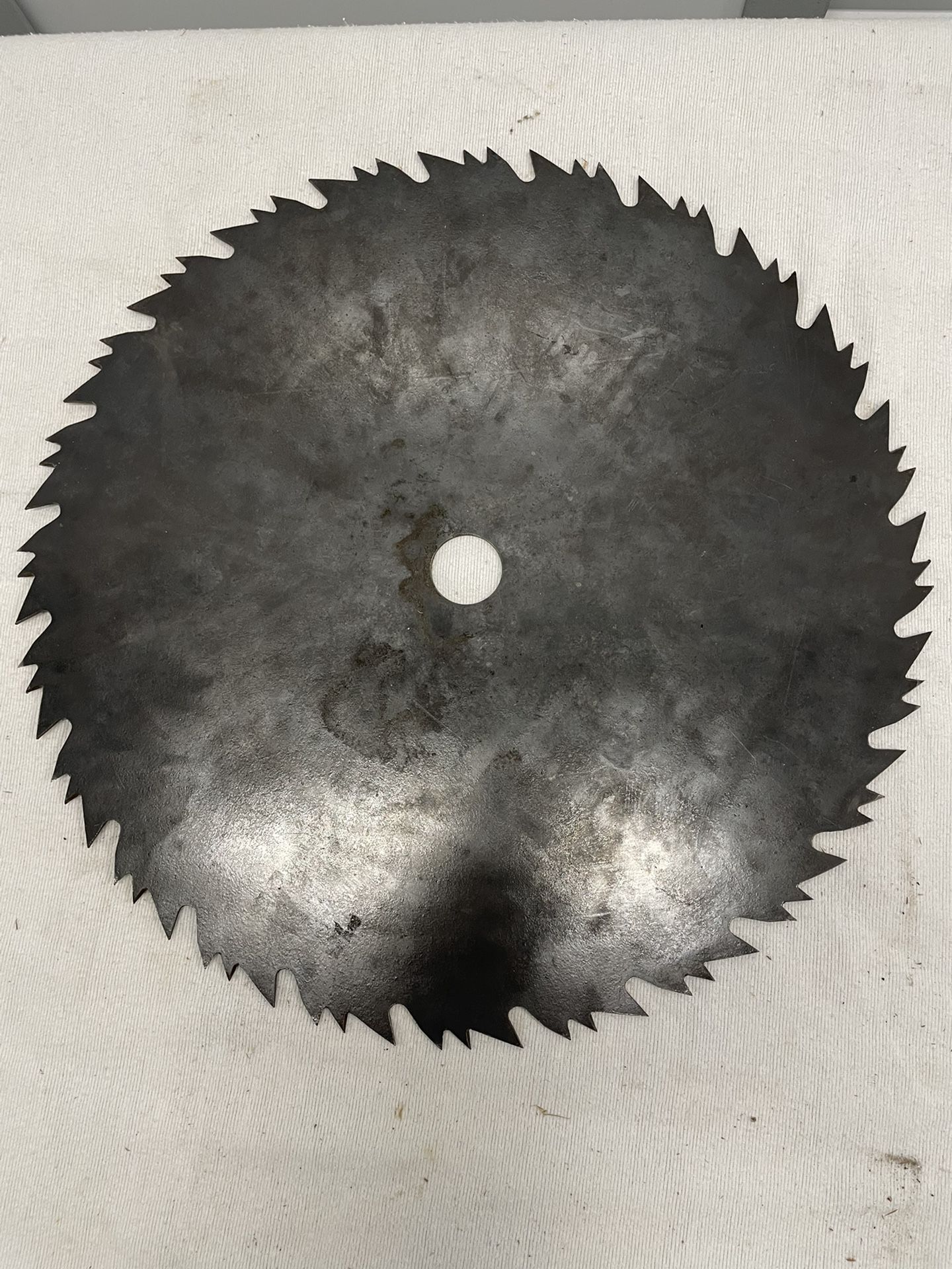 I bought the saw blade as a decoration. Very sharp and clean. 15”-16” diameter. 1 1/8” arbor? Tools, machinery