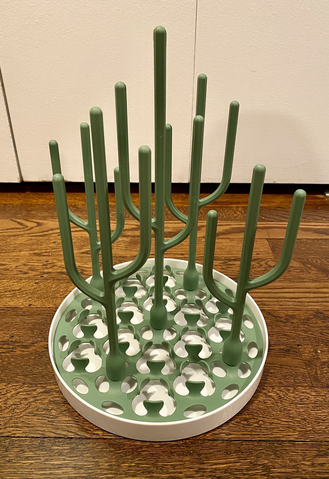 This Boon drying rack can hold multiple shapes and sizes of up to 8 baby bottles and additional baby accessories. It includes 5 standing cacti with multiple branches you can arrange for your needs. The rack can spin so you’re able to easily reach all items. Excess water drips down through the top tray and collects in the removable bottom tray. The rack measures 2.5"D × 9"W× 9.5"H when assembled. It is in excellent, like new condition. Pick up in Drexel Hill, PA Check out my other listings for more great items!