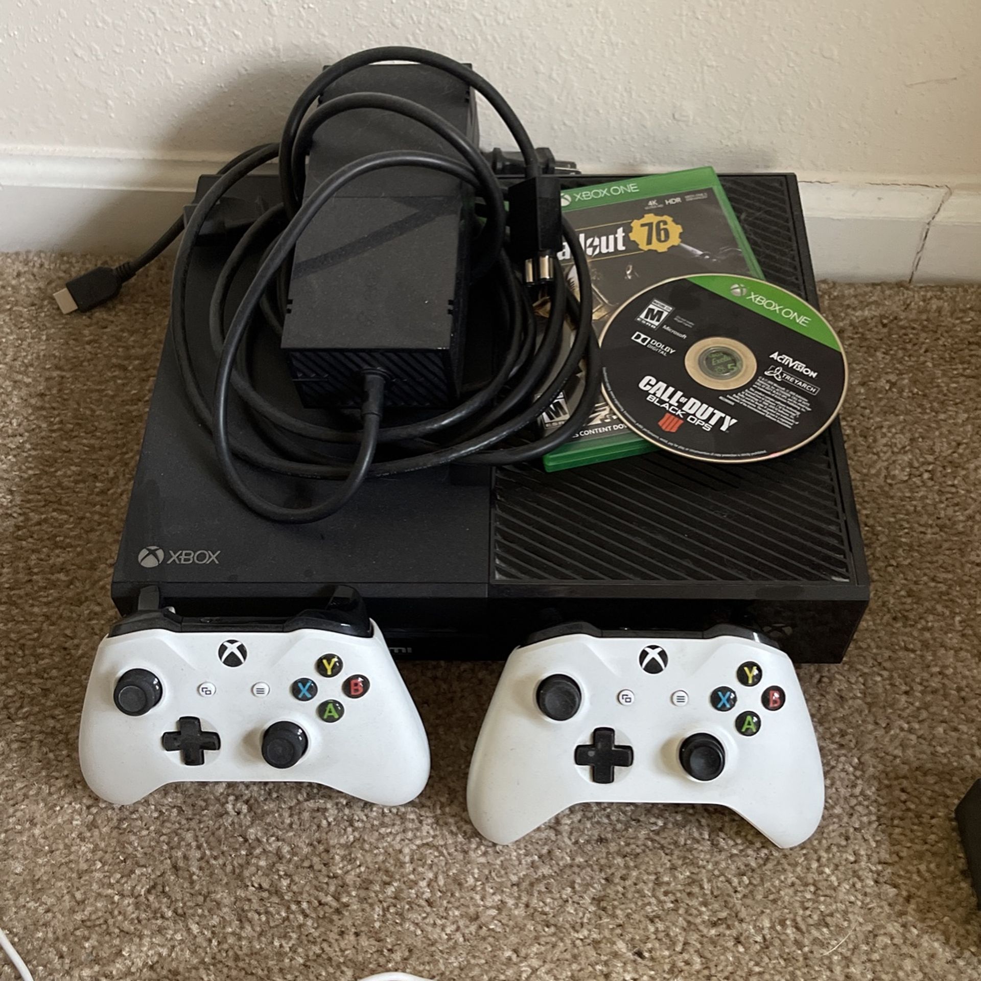 Xbox One including: Power cords 2 controllers Call of Duty Black Ops 4 Fallout 76 Works perfectly!