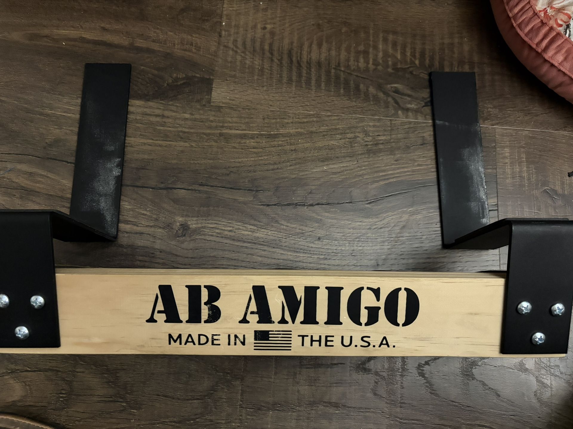 The AB amigo helps you do situps slides under the door has padded underneath the wood For you to put your feet, if you have any questions, please let me know this retails for $50 so I think 30 is a good deal Fitness exercise CrossFit weights training Gym