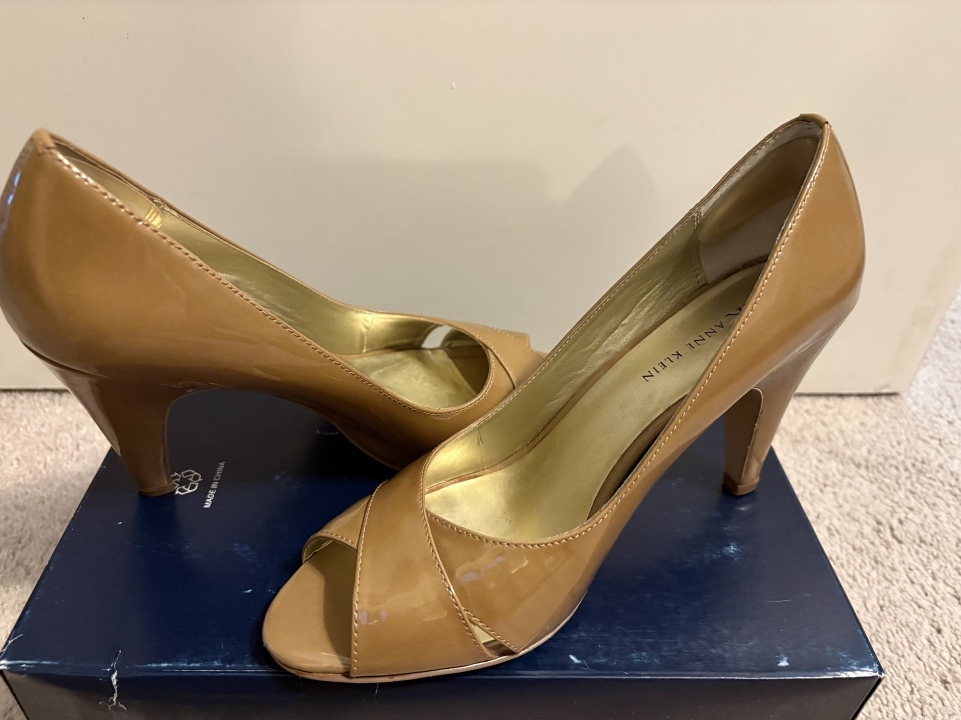 Beautiful Anne Klein patent leather peep-toe pumps. Camel color. Size 8M. True to size. Very lightly worn. 3-3/4” heel. Public meetup. Cash or Zelle only.