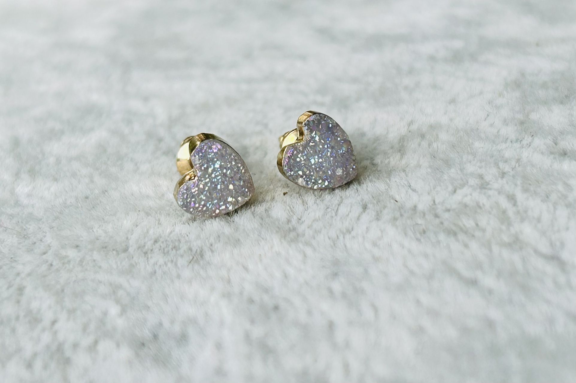 18kGP Beautiful natural druzy agate heart earrings. Size 6mm.