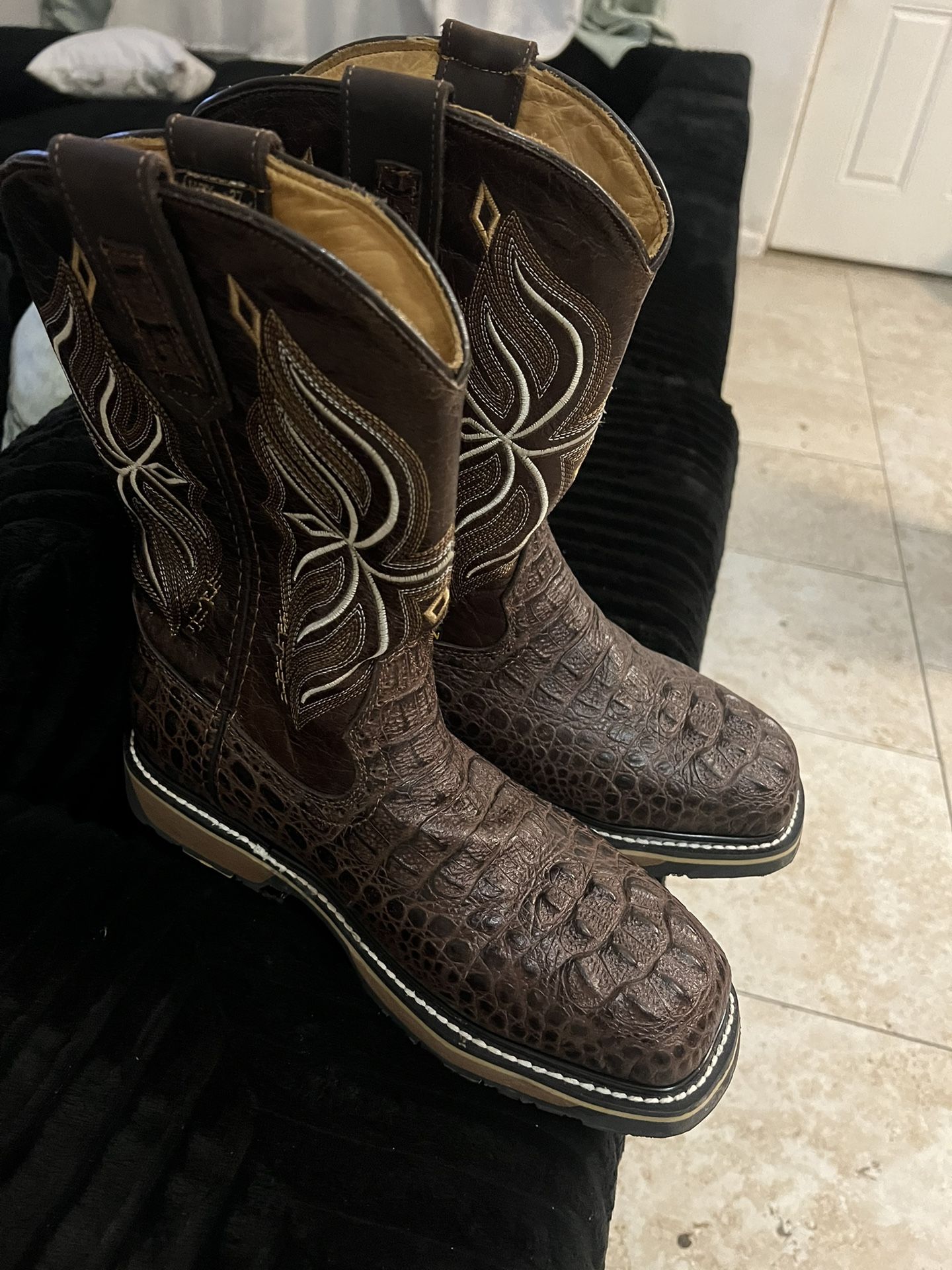 STEEL TOE SQUARE TOE BOOTS. IMITATION ALLIGATOR. NEW. GOT THE WRONG SIZE. 8.5 in boots.