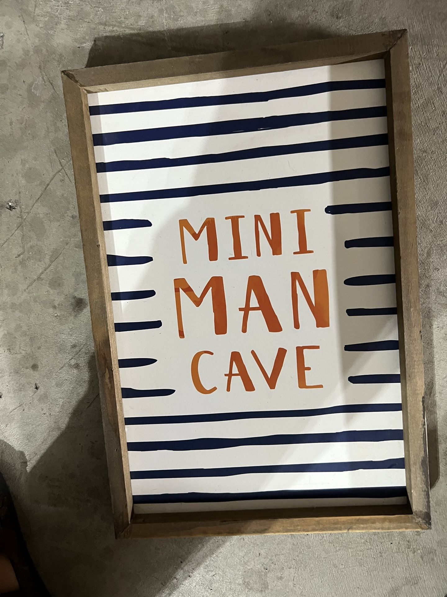 Mini Man Cave Wood Wall Decoration Includes: 1 decoration Dimensions: Length: 16 3/8" Width: 11 1/8" Thickness: 1 1/2" Orientation: Vertical Material: Wood