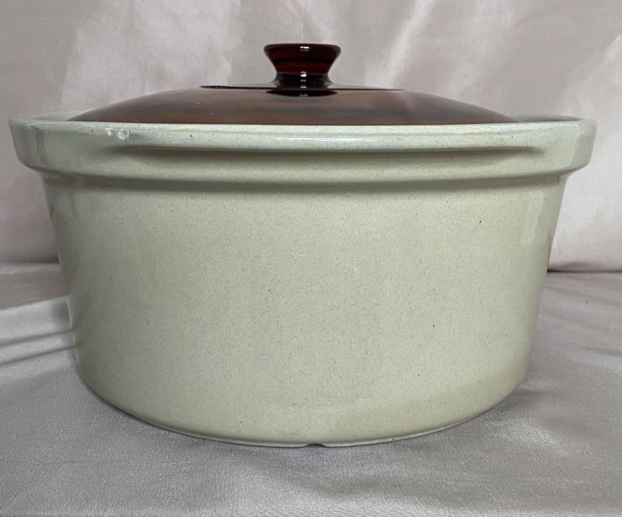 New in the box unused crockpot. Stoneware with the glass top. Original 1970s.