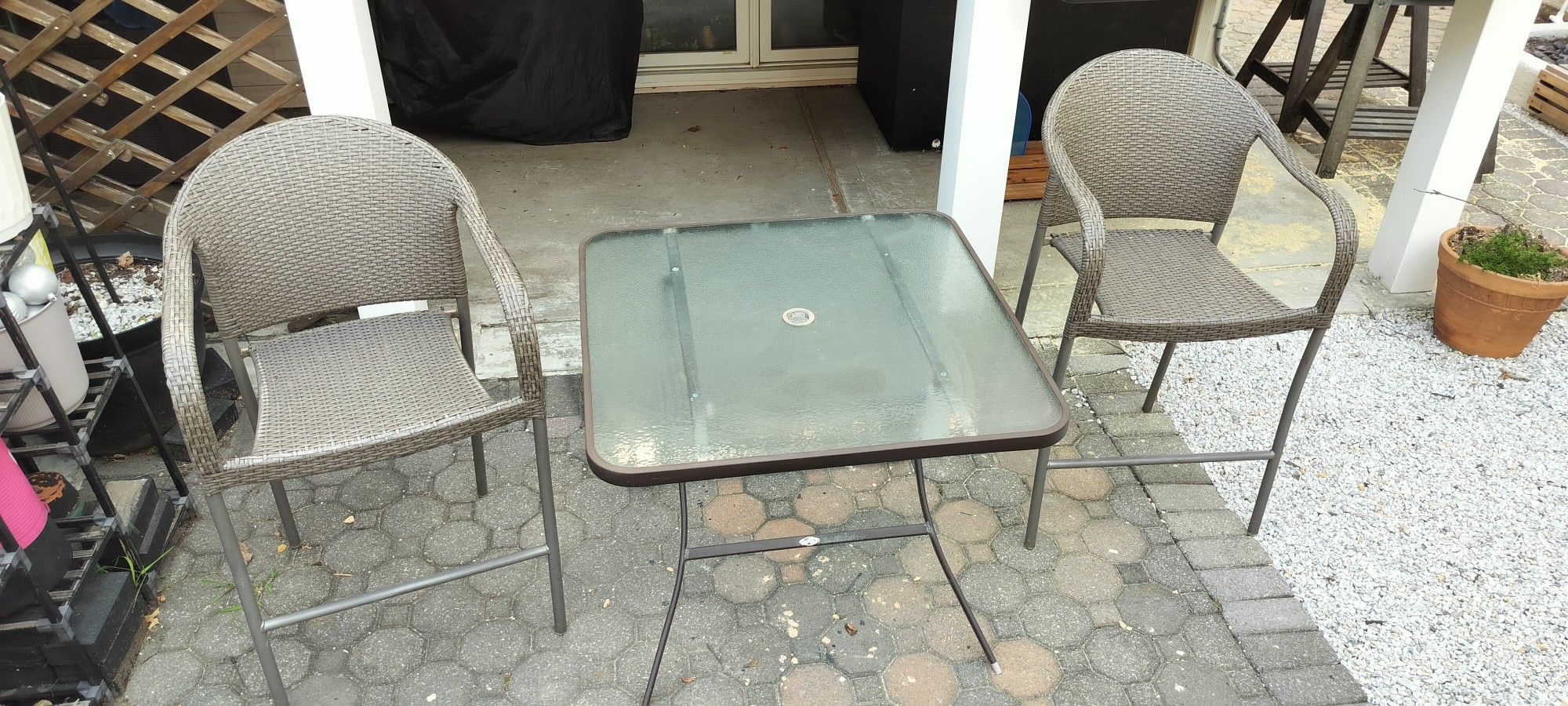 No damage. Comes as a bundle. Barstool wicker seats and 36x36 table with glass top. *If post is still up, item is available.* *Can deliver locally, no fee.*
