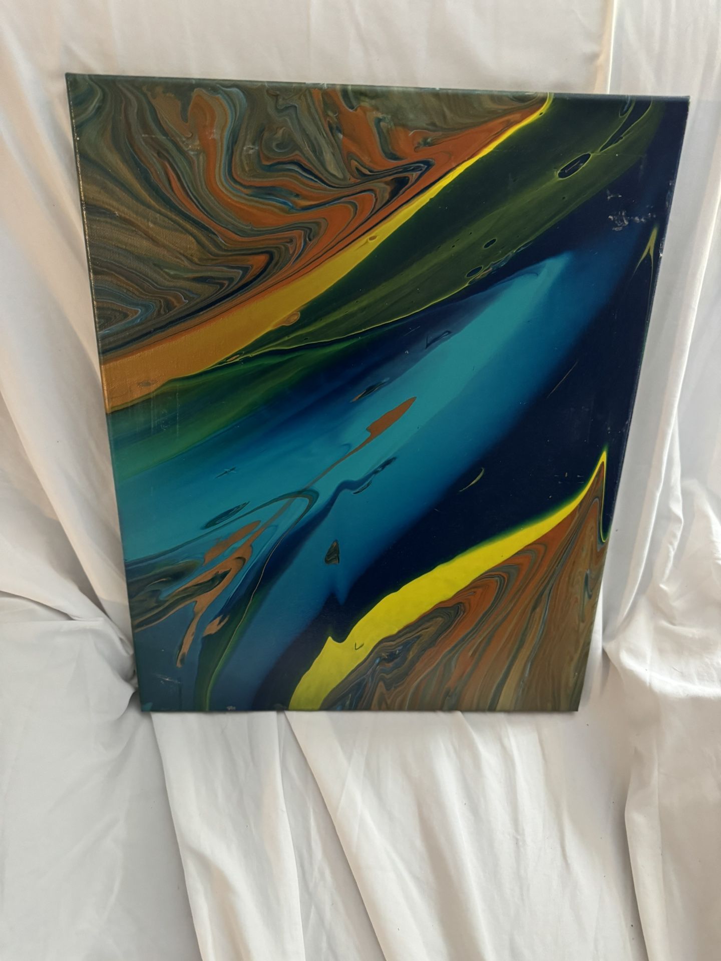 Colorful oil painting with matching vase done by local artist. Measures 24 inches X 18 inches. Asking $20 for the set or best offer.