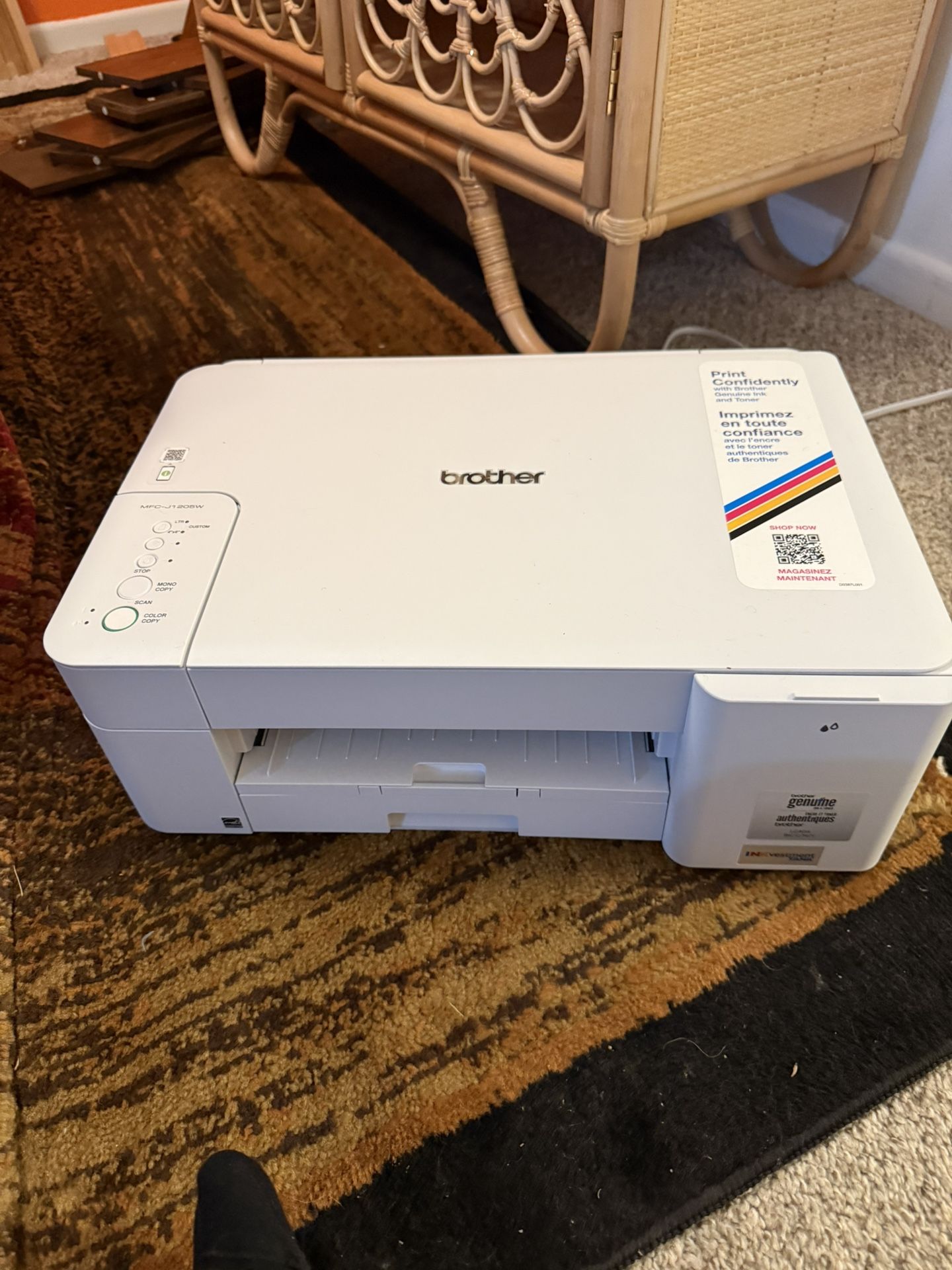 Brother MFC-J1205W inkjet printer for sale. Bought in October 2025 and lightly used. No mechanical or printing issues — works exactly as it should. I’m selling only because I print large volumes daily for remote legal work and decided to upgrade to a laser printer. Includes: • Print / Scan / Copy • Wireless printing • Ink installed • Clean, well-maintained Pickup & Payment: • $90 or best offer • Cash only • Local pickup only • Hoffman Estates, IL 60169 Great printer for a home office or everyday use. Not accepting trades or holds.