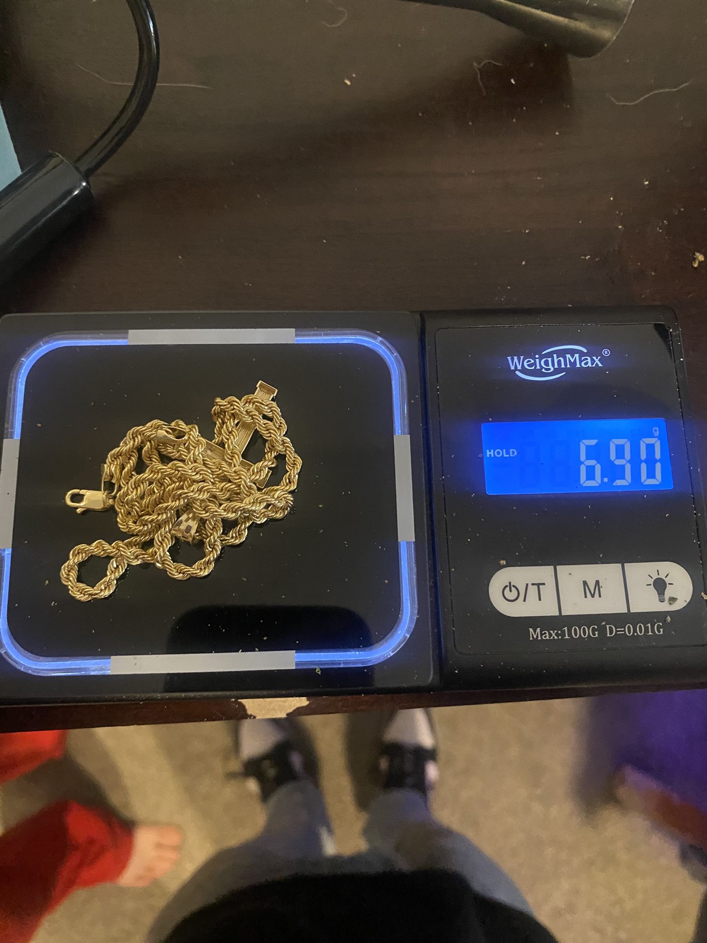 10K Gold Diamond Cut Rope 18’ inch chain 10K Gold Pendant with white gold REAL GOLD Both together weight 6.90 Grams Pendant Weights 2.8 grams NOT FREE!!! TESTING THE WATERS WILLING TO SELL TOGETHER OR SEPARATELY LOOKING FOR OFFERS OR TRADES WILL GO TO PAWN SHOP TO SHOW THAT THE GOLD IS REAL