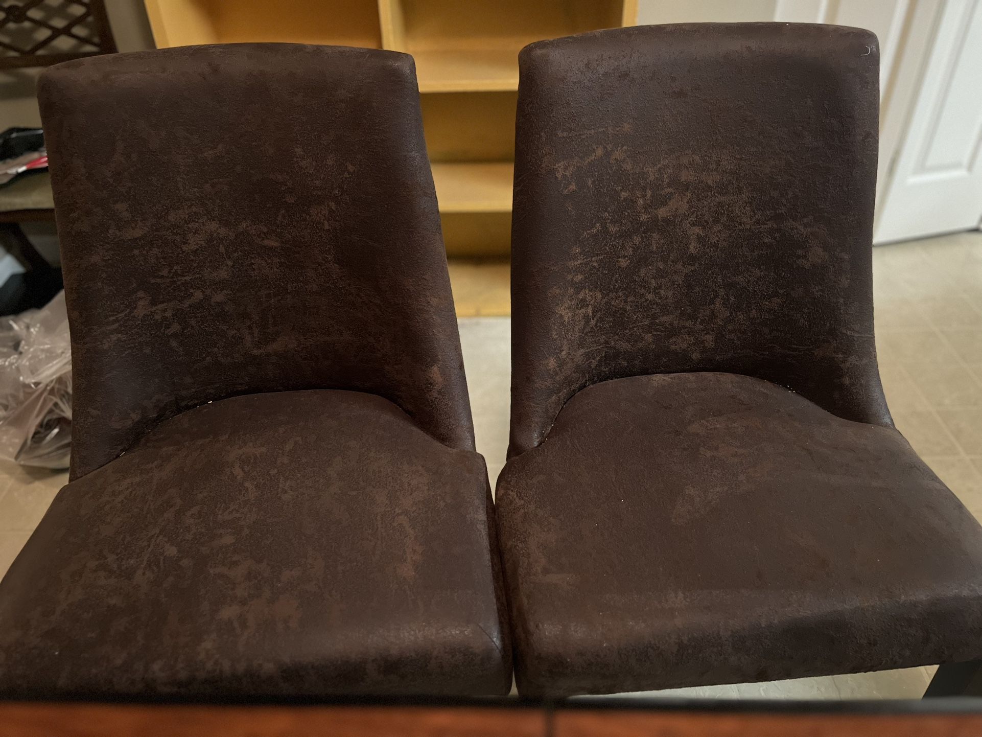 Gloss brown dinner table with black trim and legs. Matte drown velour chairs (2)