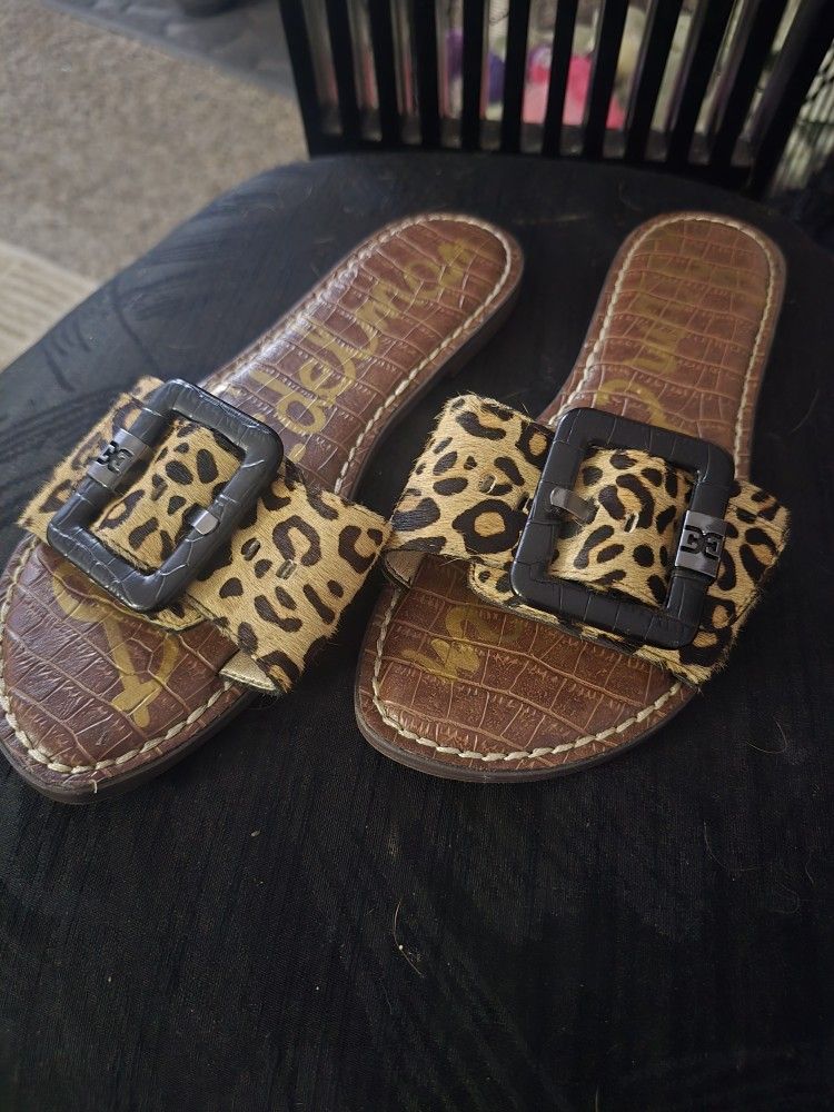 SAM EDELMAN Granada Sandals Slides Womens Size 7 Slip On Flat Leopard
