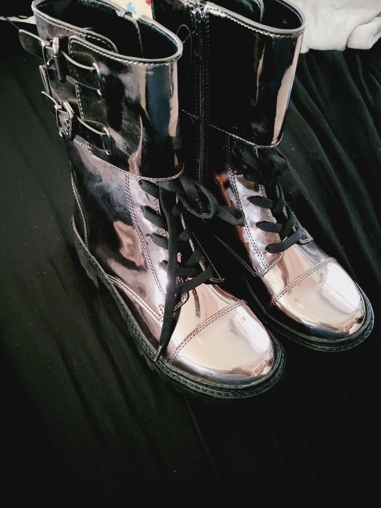 DKNY chrome Combat Boots. Size 8 1/2. Never used, brand new. Was a gift.
