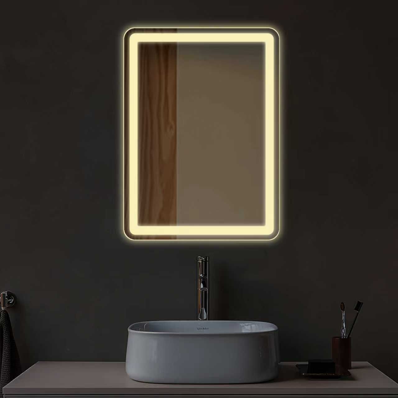 LED Mirror Light Bathroom 20*28” Rectangular Luxury Warm Light Vanity Premium Dimmable Touch Button Modern Decorative Shatter-Proof Wall Mount