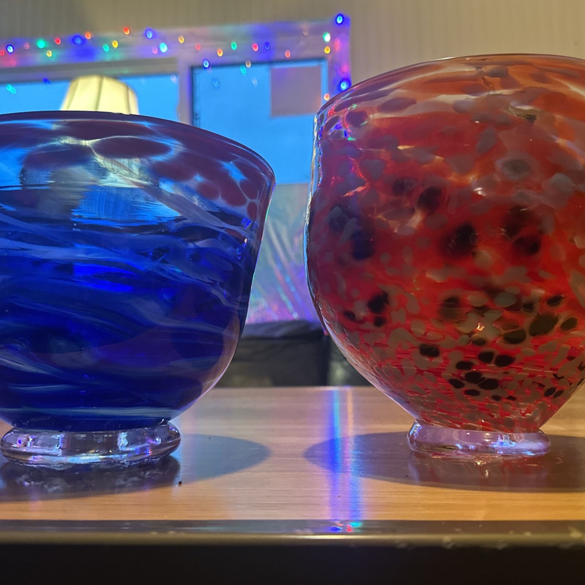 $30 each OR Take both for $50! Thick, quality pieces! No chips, cracks, or blemishes of any kind! Great for use as a center piece, fruit bowl, plant vase, key or change dish, condoms, or a colorful splash of art for a mantle or a hutch! Always used as stand alone art. Like new condition! They are roughly 8-10” wide at the openings and 8-10” tall from the lip to the base.