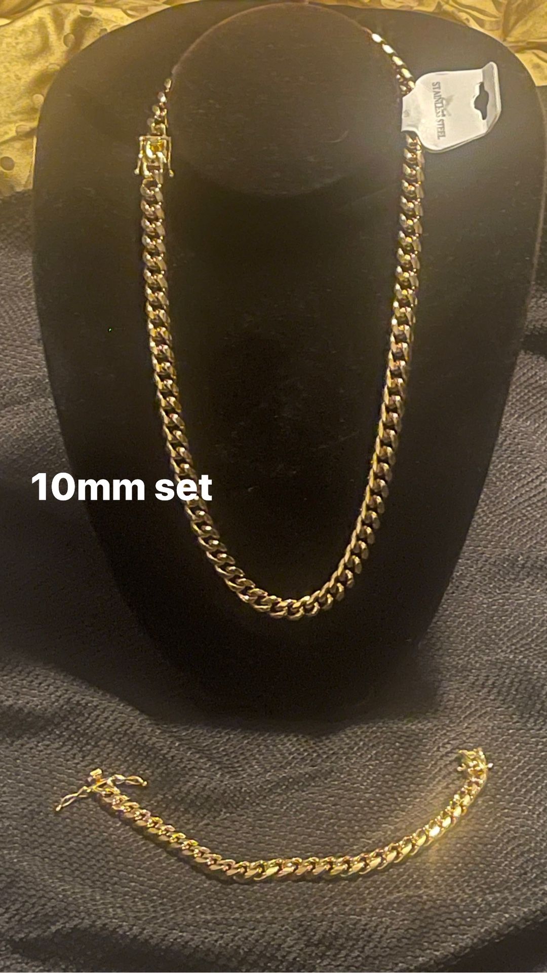 Stainless steel gold $100 for 10mm set $300 for 18mm set and $150 for 14mm set and $85 for 8mm set