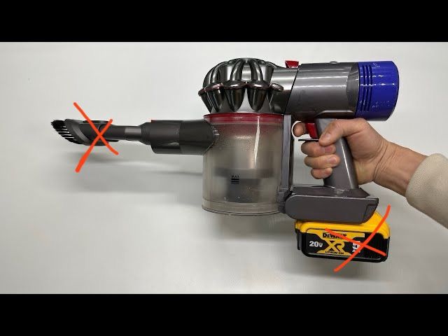 Up for sale is a used Dyson V8 Cordless Vacuum. No attachments, no battery. Just the vacuum itself. Adapter added to accommodate DeWalt charger battery.