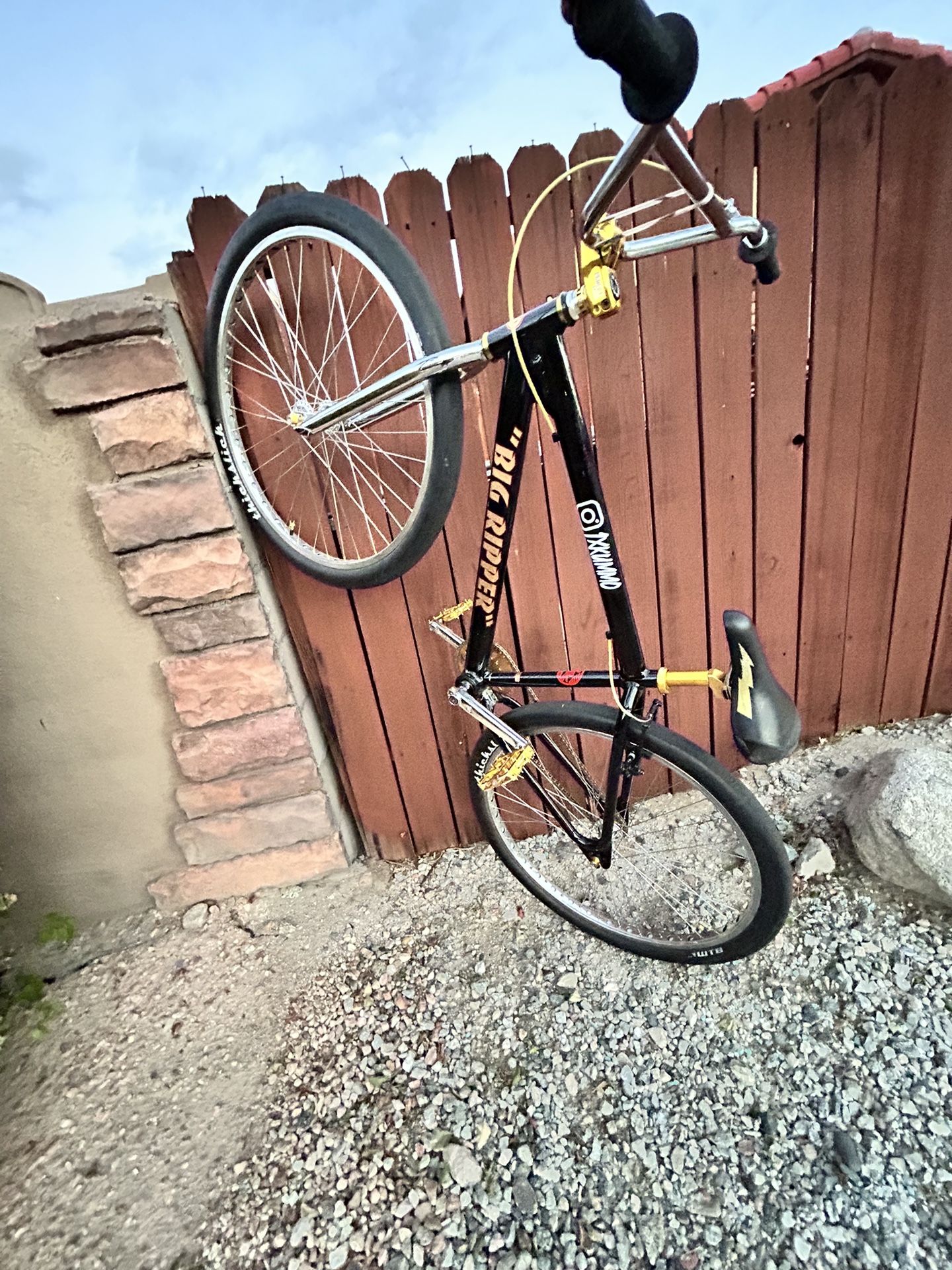 big ripper- thick slicks, crown caps for air, se bike pegs,se bike grips, gold sprocket, se stem,