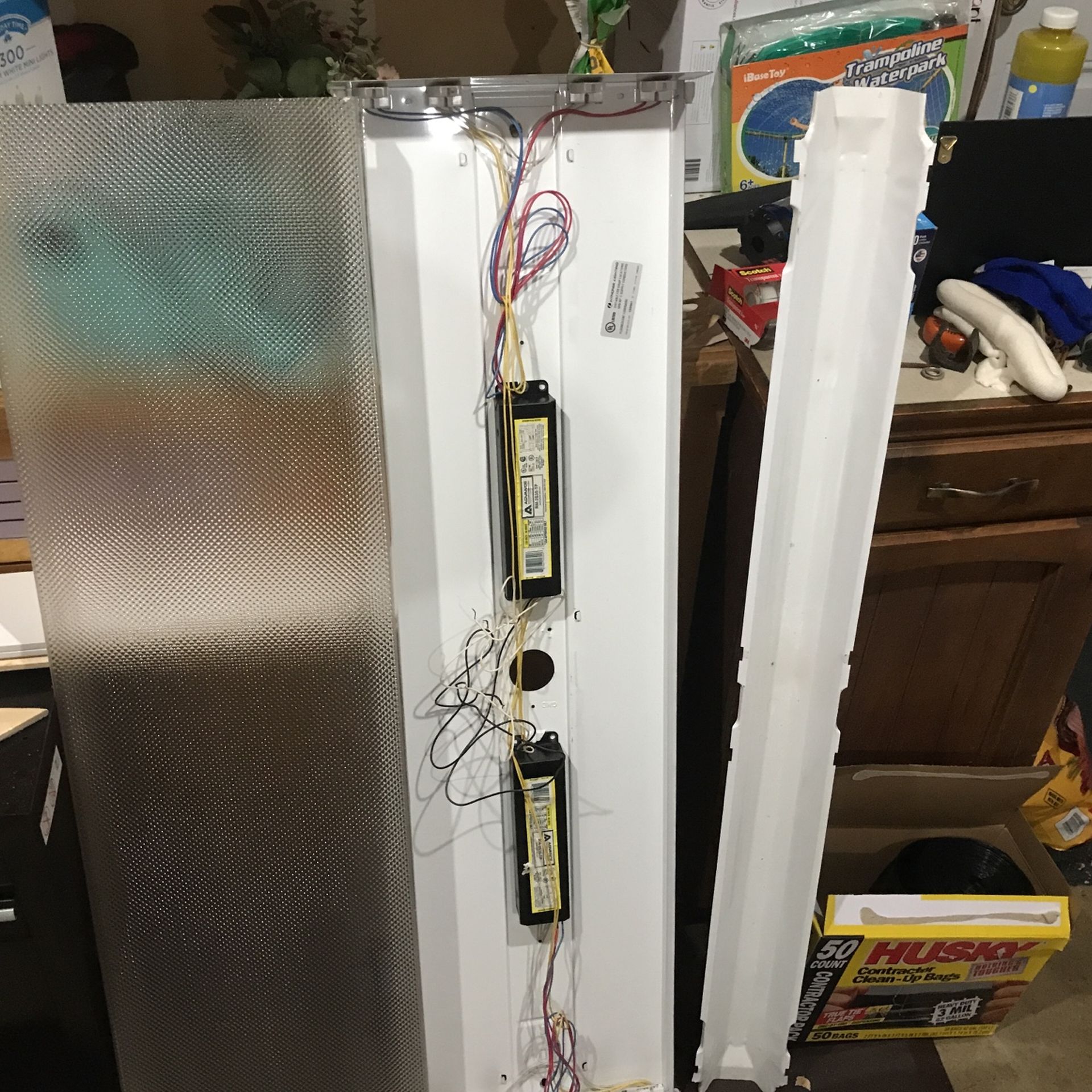 Selling a nice lighting fixture. Takes 4 of the long bulbs. Works great. Perfect for a garage. 48”x14”.