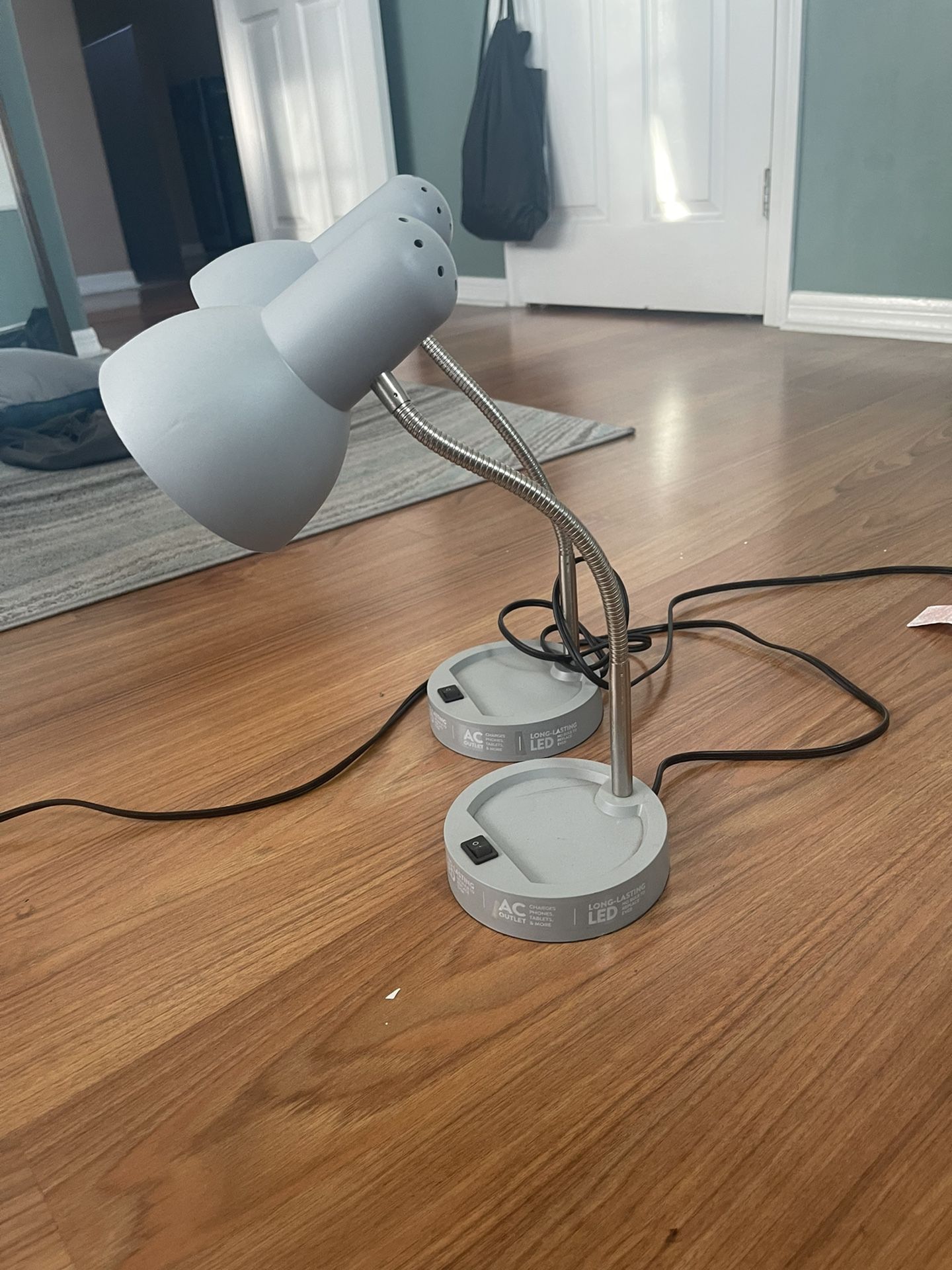 Two Rarely used desk lamps! LED lights are very strong and bright. Comes with cables and everything. Lights are bendable in all directions!
