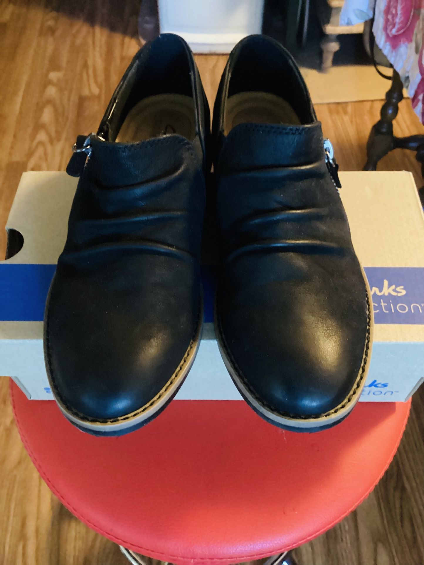 Clarks Women Camzin Pace Unkle Shooties Booties Size 6 M Black Nubuck Side Zip
