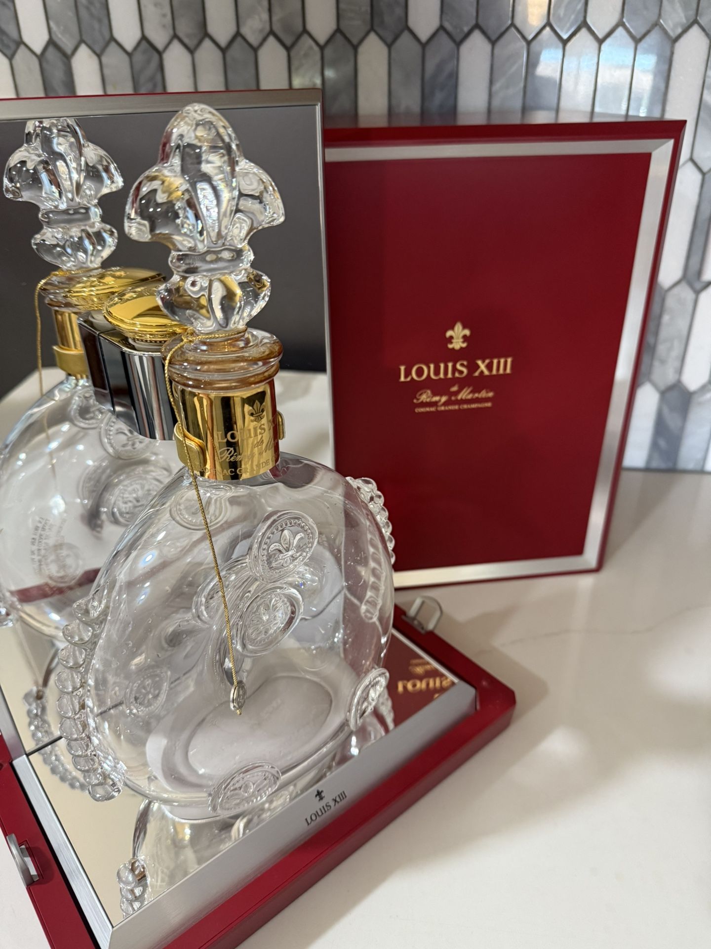 The crystal decanter comes with two stoppers a lanyard, a registration booklet with the registration number and the QR code not pictured The box and glass holding the crystal is in perfect condition. There is a single scratch on it. The photos you see are not edited.