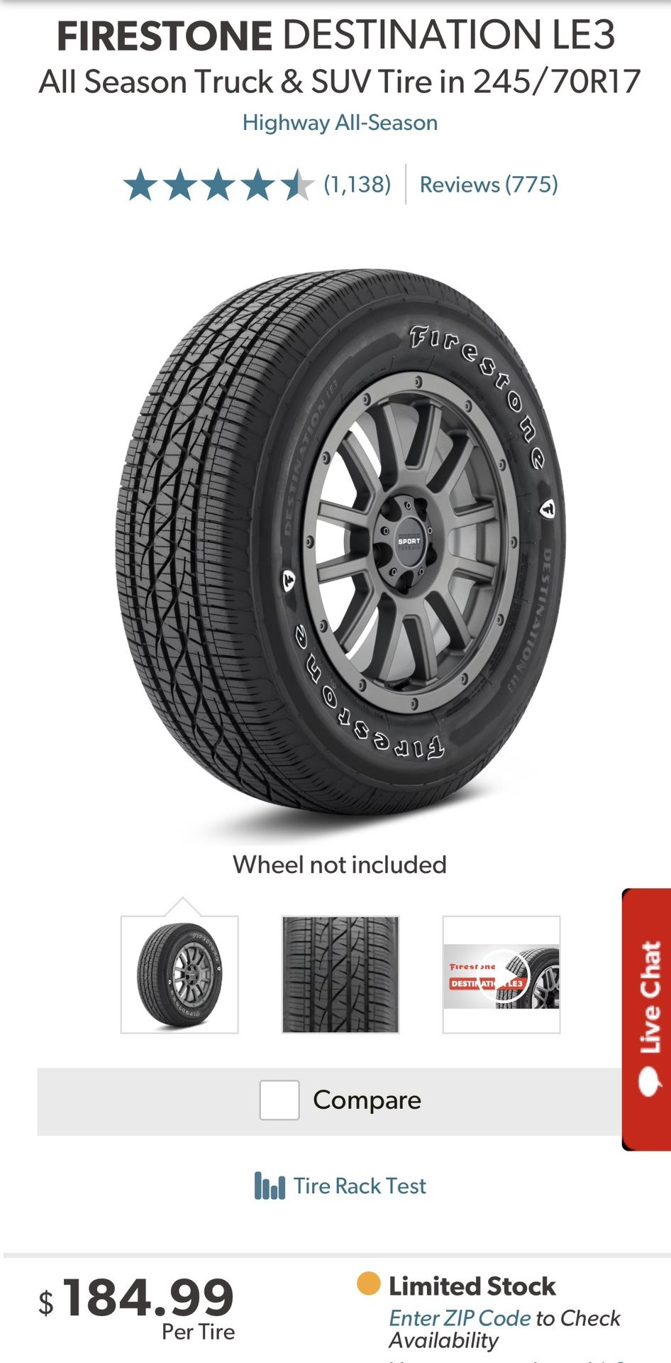 4- Firestone Tires- 245/70R17
