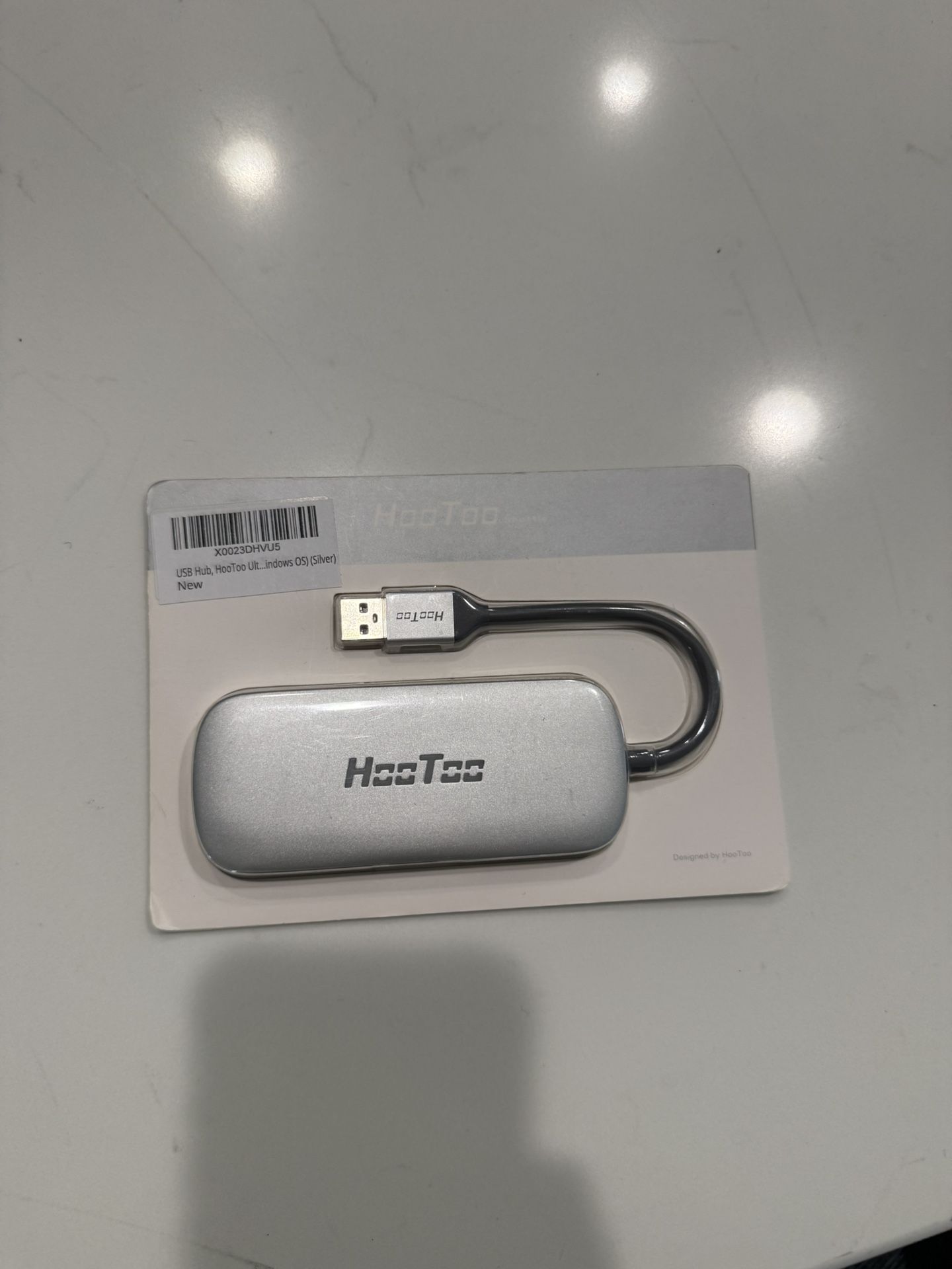 New HooToo USB Hub. Silver color. For Windows OS. Has total 900mA max. Connects to laptops, mouse, keyboard, and phone.