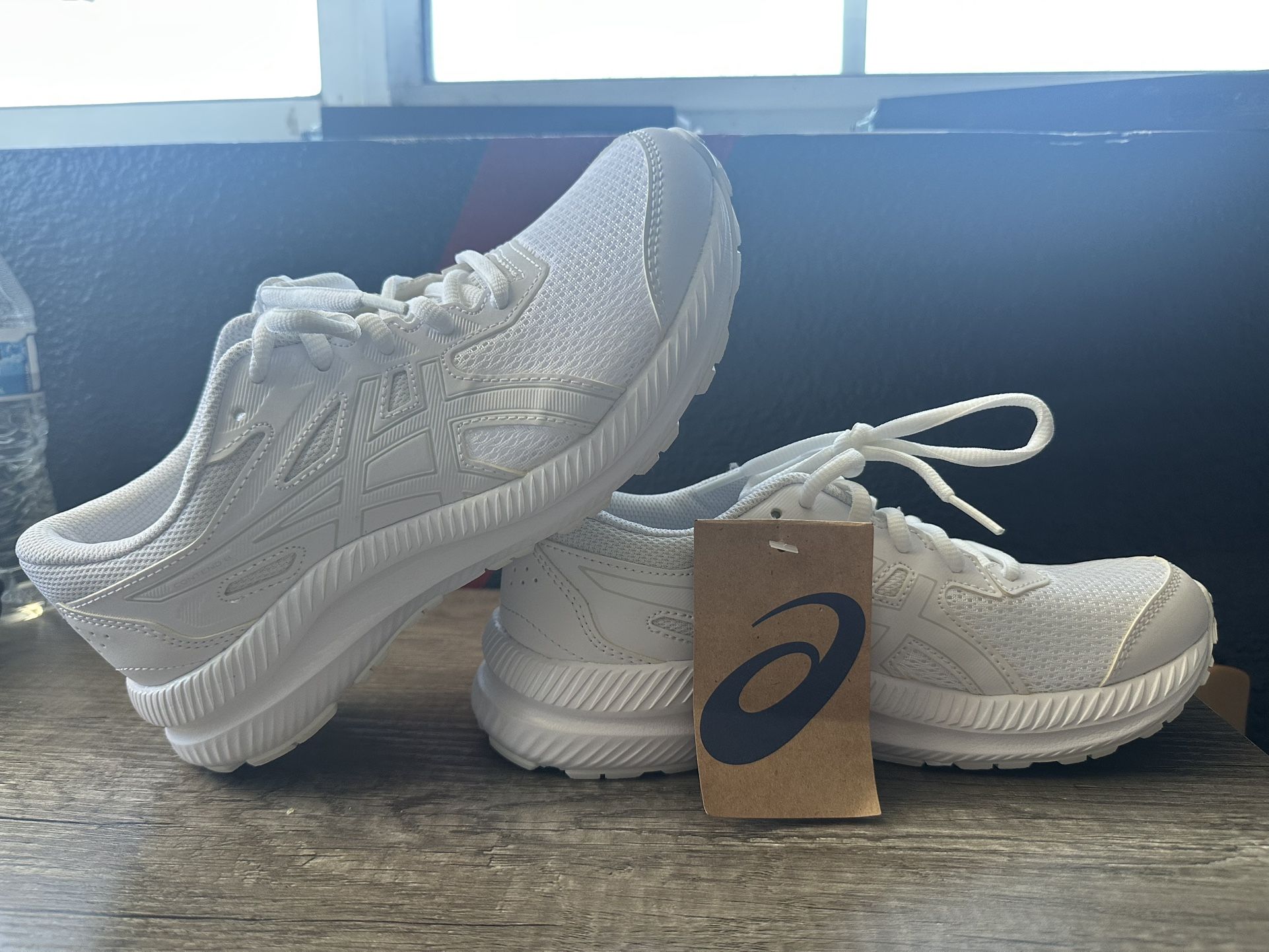 Brand new, my son never worn them. We forgot we had them in the closet and how he is a bigger size. Retail for $89.99 plus taxes