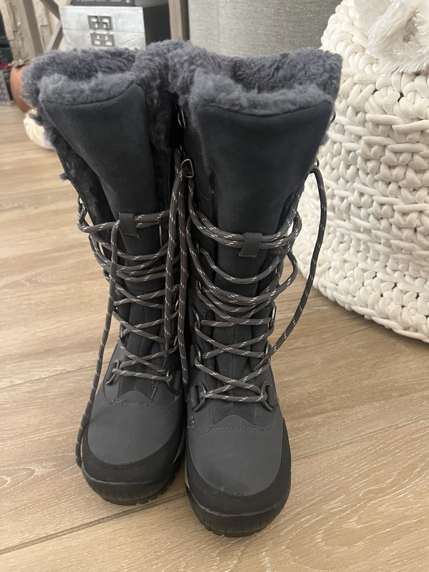 Gray BearClaw boots - waterproof, never worn, fur inside, lace up, size 8. Excellent condition.