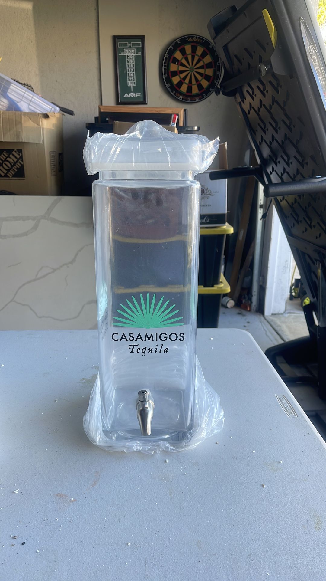 Casamigos tequila large beverage dispenser comes with wodden base